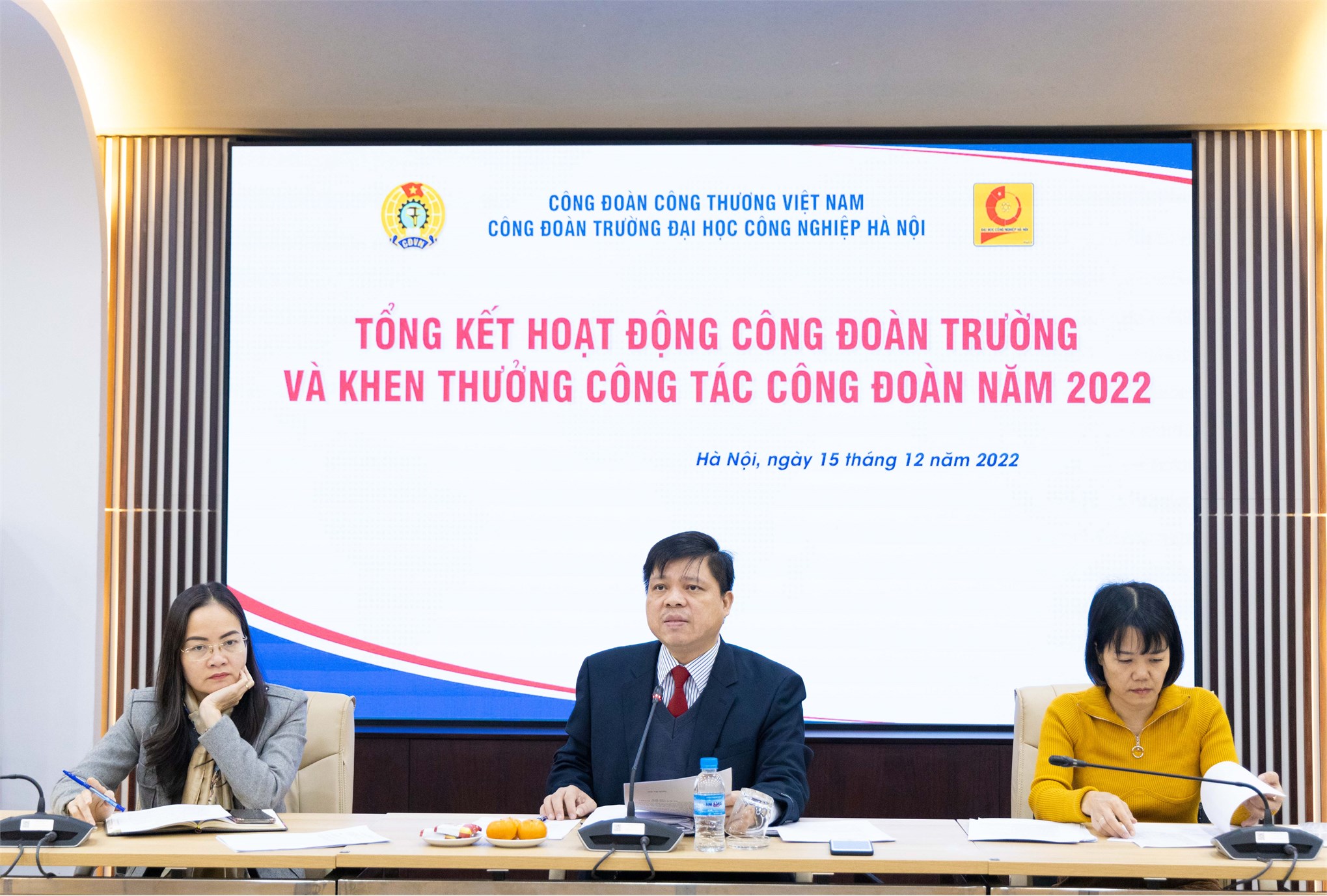 Hội nghị đã nghe PGS.TS. Phạm Văn Đông - Chủ tịch Công đoàn Trường trình bày Báo cáo tổng kết công tác công đoàn năm 2022 và phương hướng công tác năm 2023. Về cơ bản những mục tiêu, nhiệm vụ đặt ra trong kế hoạch năm 2022 của Công đoàn Trường đã được triển khai thực hiện thành công: Công đoàn Trường cũng đã phối hợp với Chính quyền thực hiện nhiệm vụ tuyển sinh, đào tạo năm học 2021 -2022; tham gia góp ý, xây dựng và triển khai thực hiện các quy định như Quy chế làm việc, Quy chế chi tiêu nội bộ của Nhà trường, Quy chế chi tiêu Công đoàn Trường và các quy định nội bộ khác.