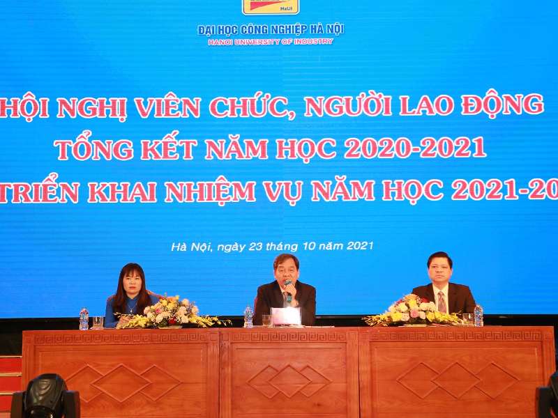 Sáng ngày 23/10/2021, Đại học Công nghiệp Hà Nội (ĐHCNHN) tổ chức Hội nghị viên chức, người lao động, tổng kết năm học 2020 - 2021 và triển khai nhiệm vụ năm học 2021 - 2022. PGS.TS.Trần Đức Quý - Bí thư Đảng ủy, Hiệu trưởng nhà trường; PGS.TS.Phạm Văn Đông, Chủ tịch Công đoàn trường chủ trì Hội nghị.