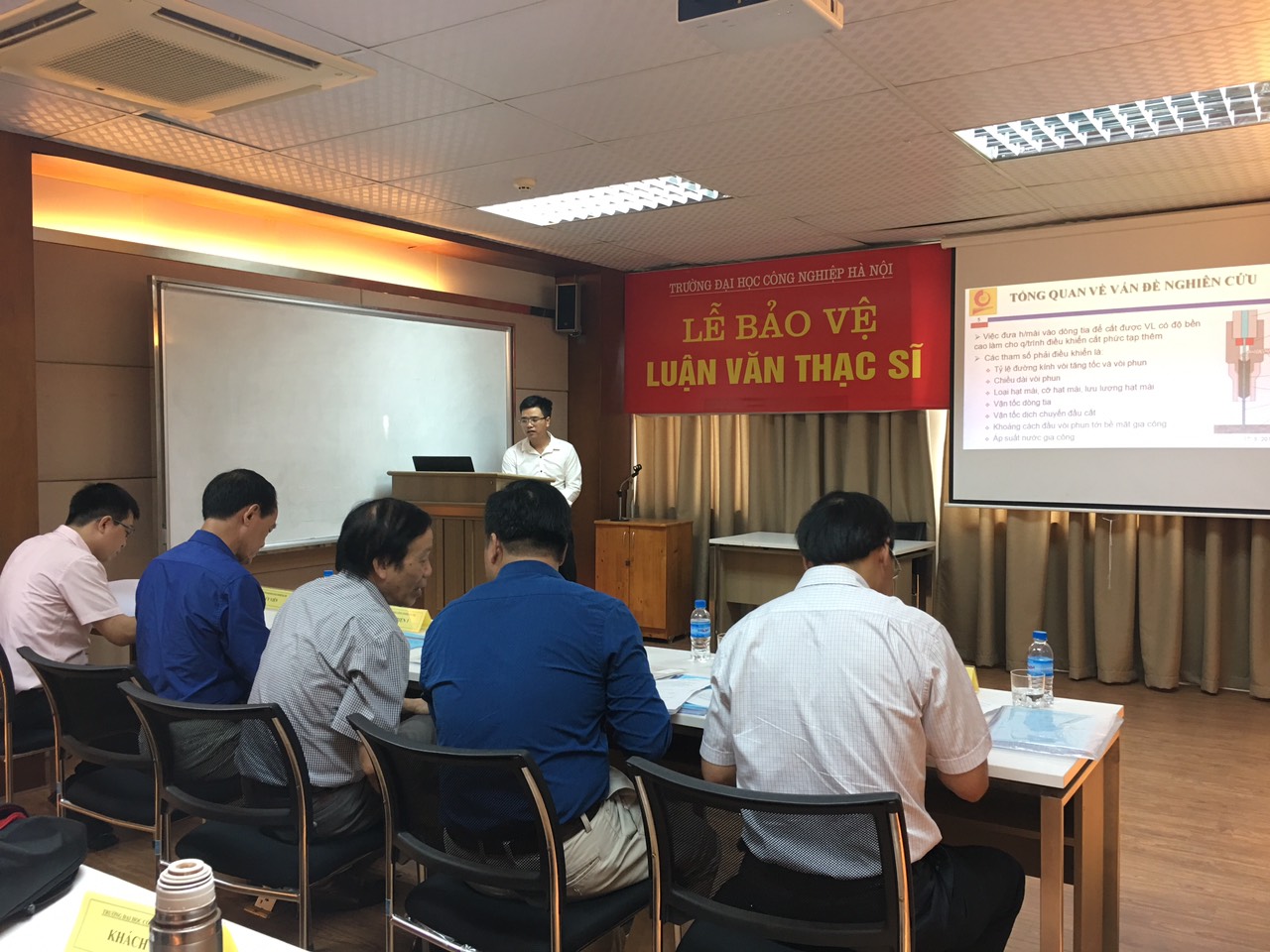 Các luận văn thạc sĩ được bảo vệ trong đợt này đã nghiên cứu và chỉ ra những vấn đề còn vướng mắc trong thực tế như đề tài: "Nghiên cứu ảnh hưởng của một số thông số công nghệ đếu chiều sâu cắt lớn nhất với độ chính xác kích thước rãnh cắt khi gia công thép SKD11 bằng tia nước áp suất cao trộn hạt mài"; đề tài: "Nghiên cứu sự ảnh hưởng của một số thông số công nghệ để nâng cao năng suất và chất lượng trên thiết bị sấy long nhãn xoáy SBOG 150"...