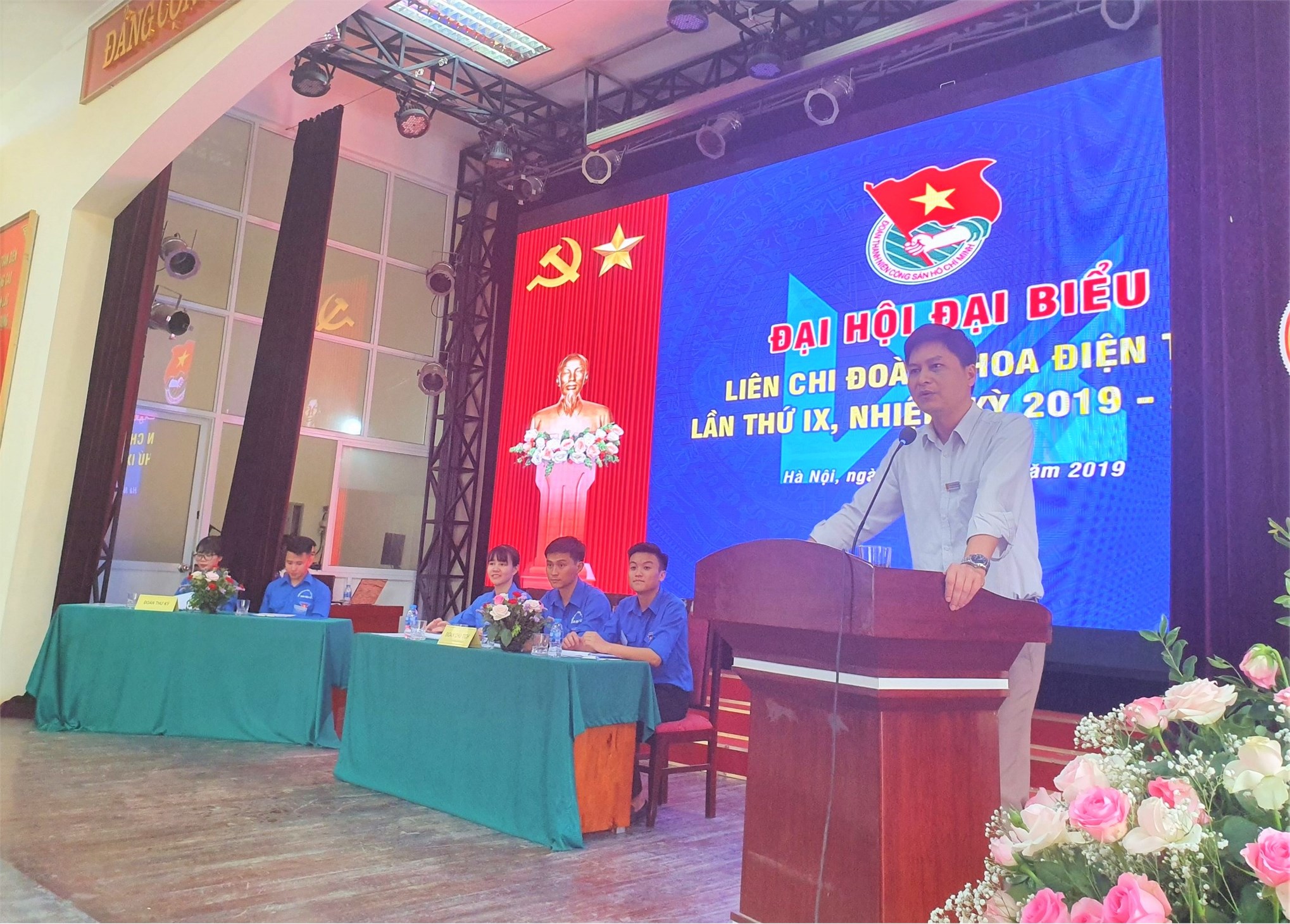Thay mặt Chi bộ, thầy Vũ Trung Kiên, Phó Bí thư chi bộ – Phó Trưởng khoa Điện tử đã tặng lắng hoa chúc mừng đại hội và phát biểu chỉ đạo. Đồng chí khẳng định Liên chi đoàn luôn xứng đáng là cánh tay phải, chỗ dựa vững chắc của Chi bộ, Ban Chủ nhiệm khoa góp phần quan trọng trong các hoạt động, phong trào của khoa đồng thời đề nghị Ban chấp hành khóa IX đánh giá đúng tình hình, tổng kết sâu sắc thực tiễn, đề ra phương hướng, nhiệm vụ, giải pháp thiết thực, có hiệu quả cao cho nhiệm kỳ 2019 – 2022; cần quan tâm chú trọng công tác giáo dục, tư tưởng chính trị, bồi dưỡng lý tưởng và truyền thống cách mạng, xây dựng đạo đức, phẩm chất, lối sống cao đẹp, lòng yêu nước trong đoàn viên, thanh niên; tăng cường công tác đoàn kết, tập hợp thanh niên, xây dựng tổ chức đoàn ngày càng vững mạnh và phát triển.
