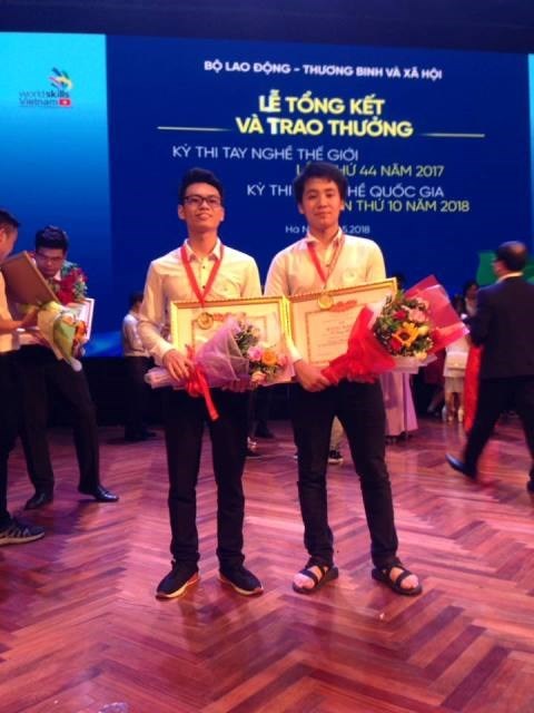 + Năm 2018: Sinh viên Nguyễn Duy Hiếu và Đỗ Long Hoàng đạt 02 giải nhất nghề Điện tử.