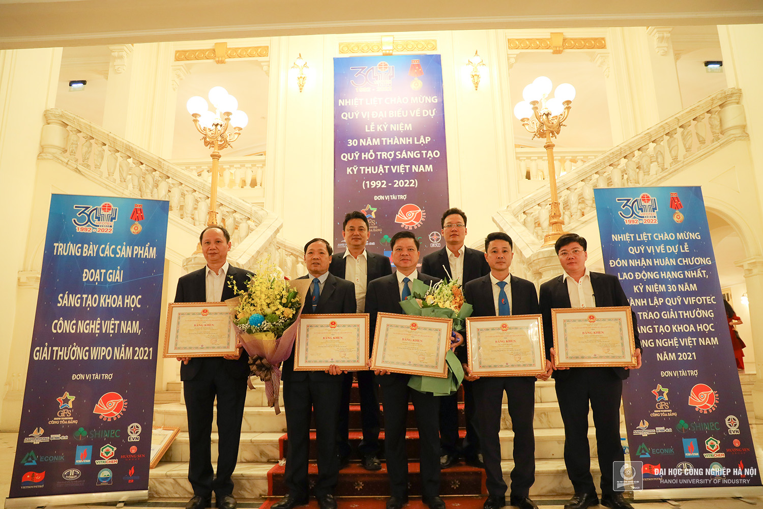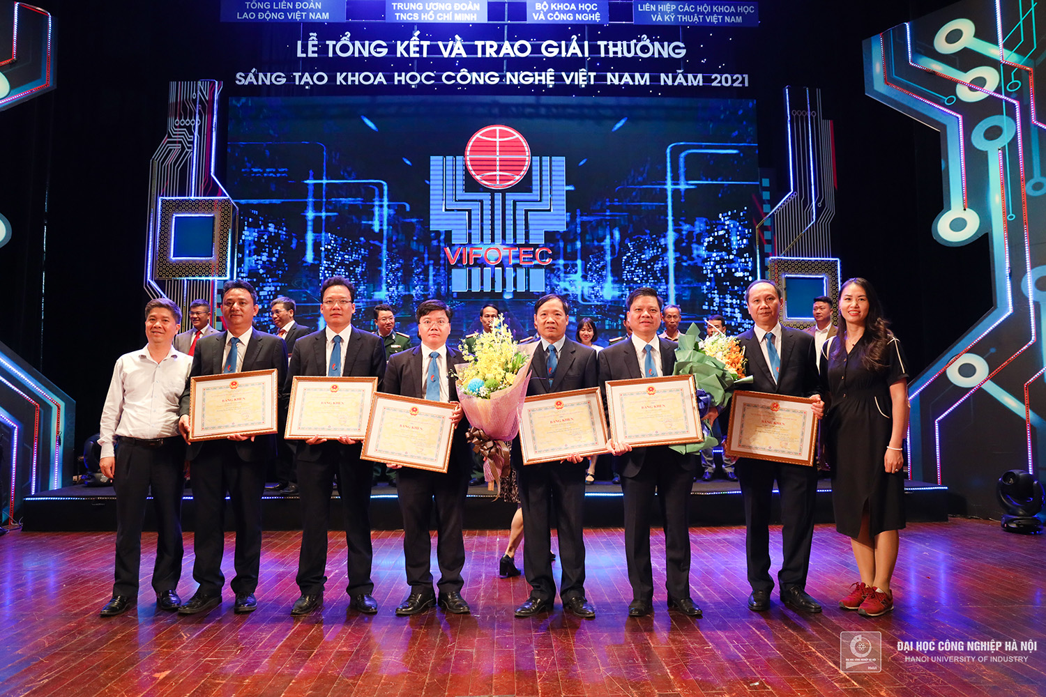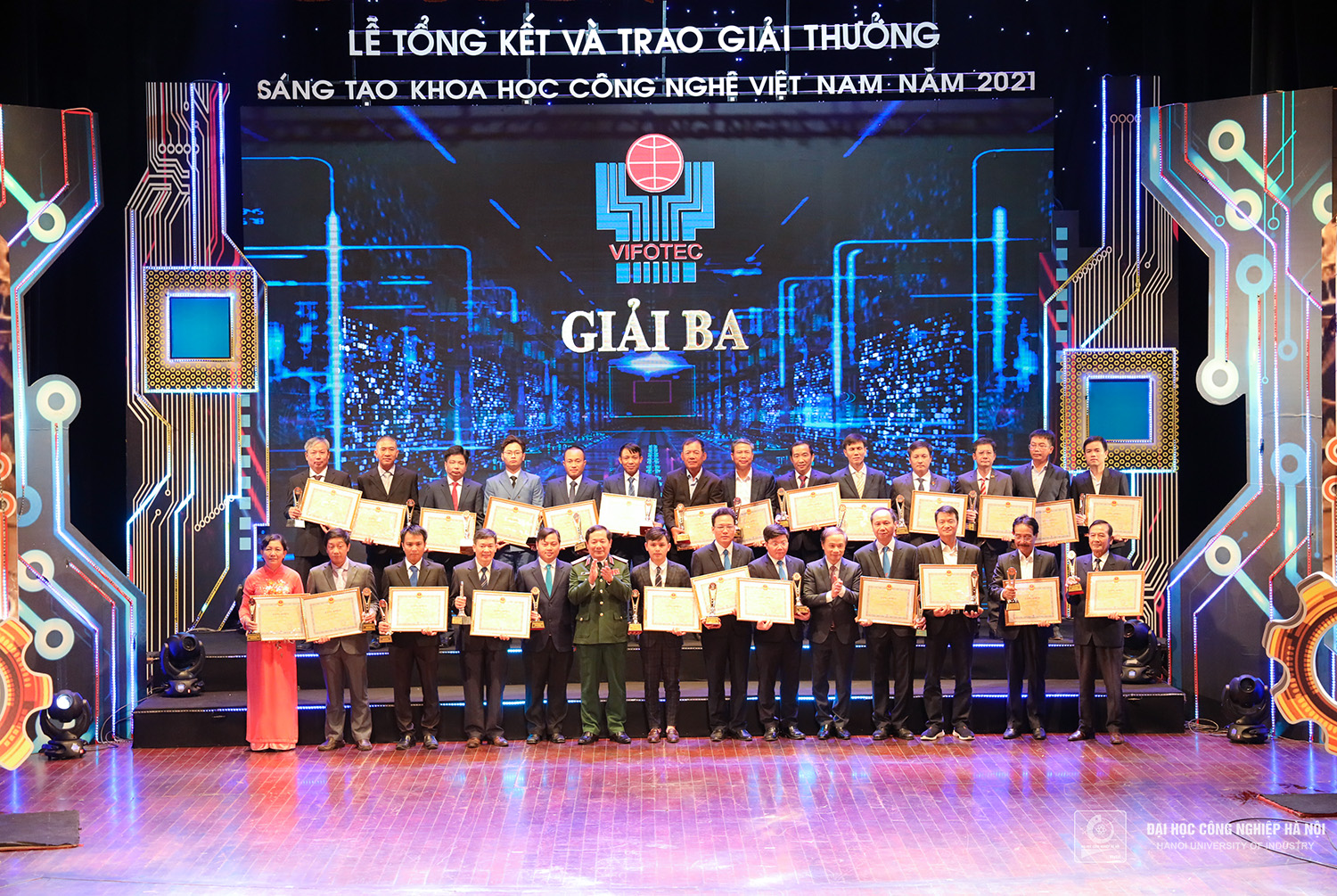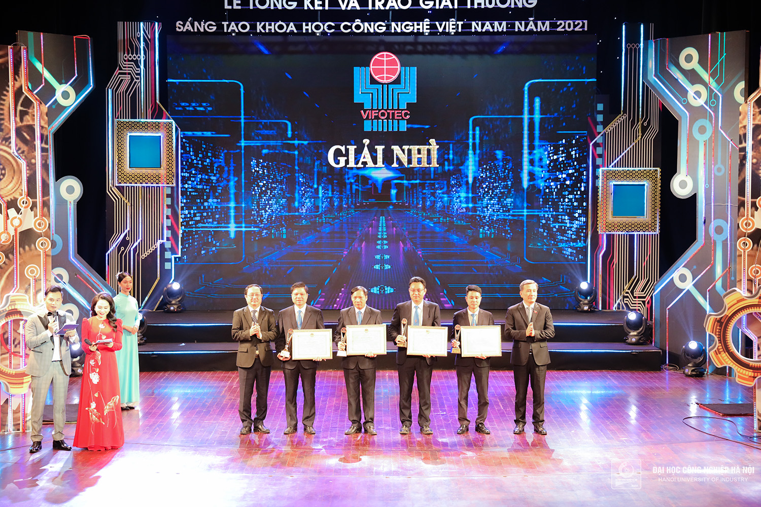 Tối ngày 27/10/2022, tại Nhà hát Lớn Hà Nội, 2 nhóm nghiên cứu Trường Đại học Công nghiệp Hà Nội vinh dự nhận giải Nhì và giải Ba “Giải thưởng Sáng tạo Khoa học Công nghệ Việt Nam năm 2021” lĩnh vực Cơ khí - Tự động hóa.