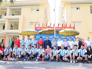 PGS.TS.Phạm Văn Bổng - Phó Hiệu trưởng nhà trường và PGS.TS.Phạm Văn Đông - Trưởng phòng KHCN cùng các thành viên nhận nhận Bằng khen và Biểu trưng từ Ban tổ chức