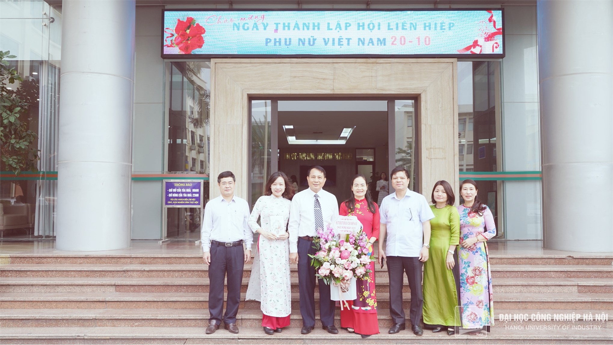 Trong tiết trời thu se lạnh, sân trường Đại học Công nghiệp Hà Nội những ngày tháng 10 cũng nhộn nhịp, tươi vui hơn. Và hôm nay, sáng ngày 19/10, Trường Đại học Công nghiệp Hà Nội tổ chức gặp mặt Ban nữ công nhà trường, đại diện nữ viên chức, người lao động, nữ sinh nhân kỷ niệm 92 năm ngày thành lập Hội liên hiệp Phụ nữ Việt Nam 20/10. Buổi gặp mặt ấm áp, tràn ngập sắc hoa và những nụ cười rạng ngời, hạnh phúc.