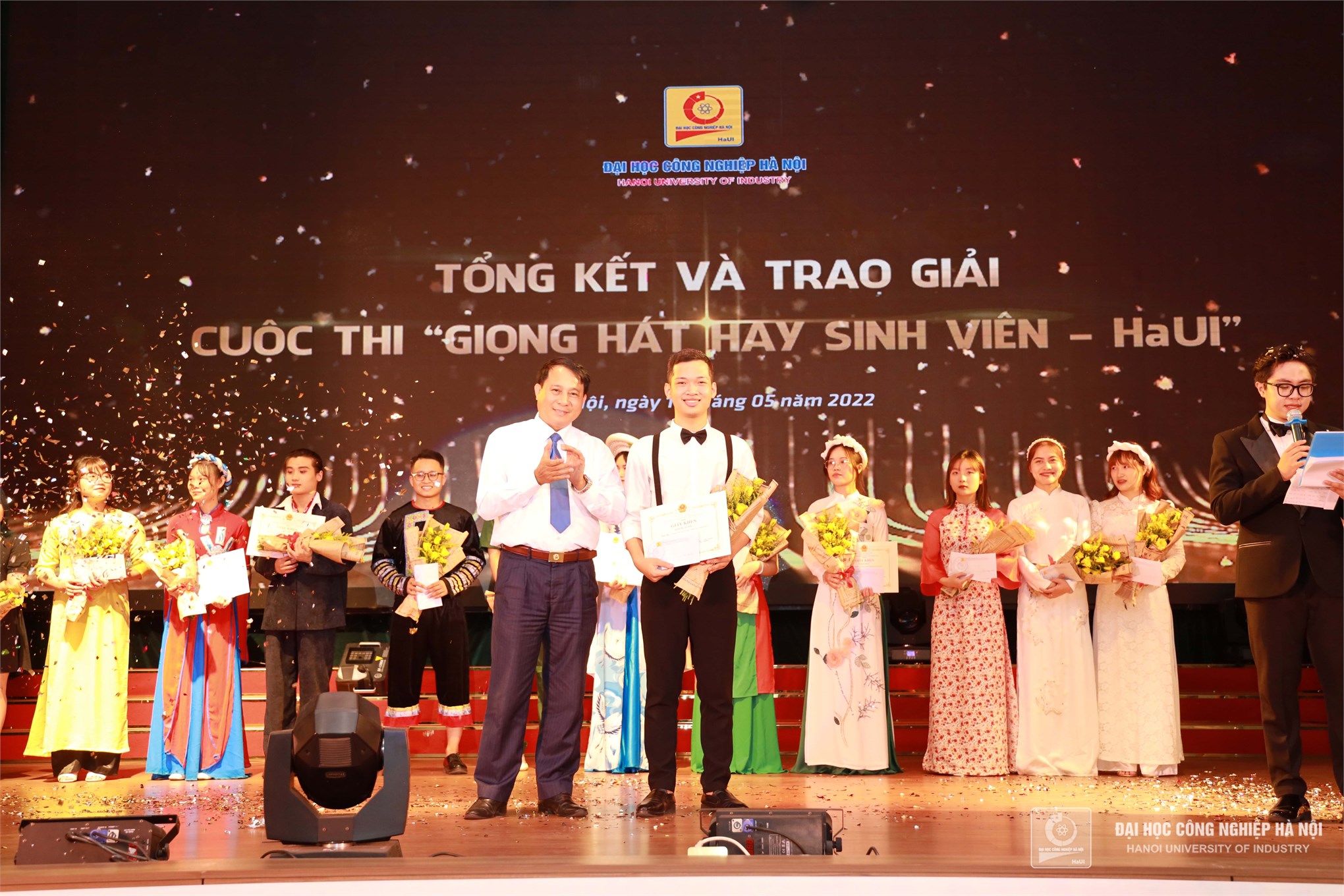 PGS.TS. Lê Hồng Quân - Phó Bí thư Đảng ủy, Chủ tịch Hội đồng trường trao Giải đặc biệt cho thí sinh Nguyễn Dương Trọng Nghĩa với ca khúc Bài ca Hà Nội. Tiết mục được dàn dựng công phu, giọng ca nội lực và bản lĩnh sân khấu đã giúp Trọng Nghĩa đạt giải cao nhất của cuộc thi năm nay.