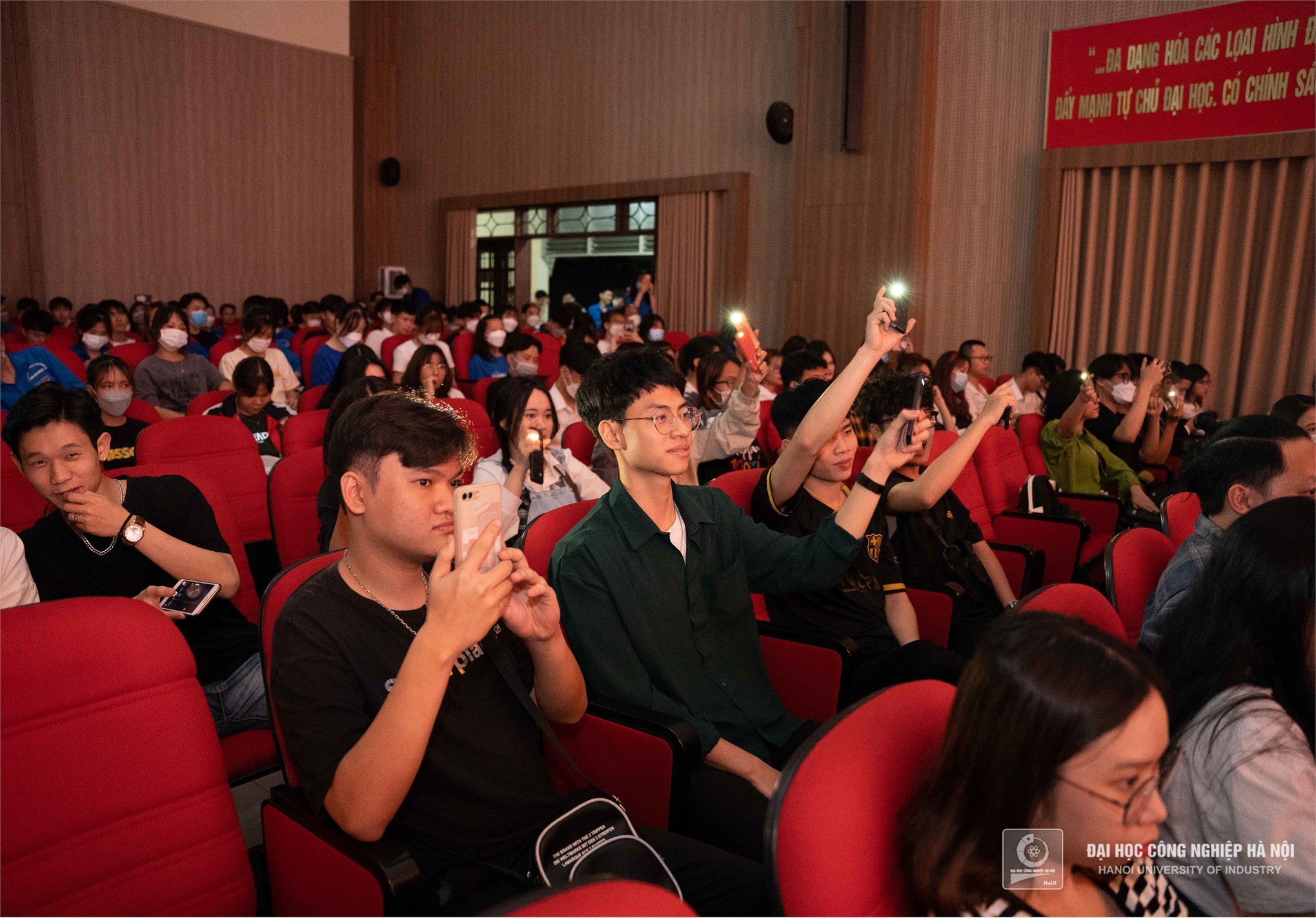 Sinh viên ngồi chật kín Hội trường tầng 3, Nhà A11, cổ vũ hết mình cho những tiết mục dự thi