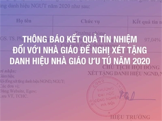 Thông báo kết quả tín nhiệm đối với nhà giáo đề nghị xét tặng danh hiệu NGƯT năm 2020