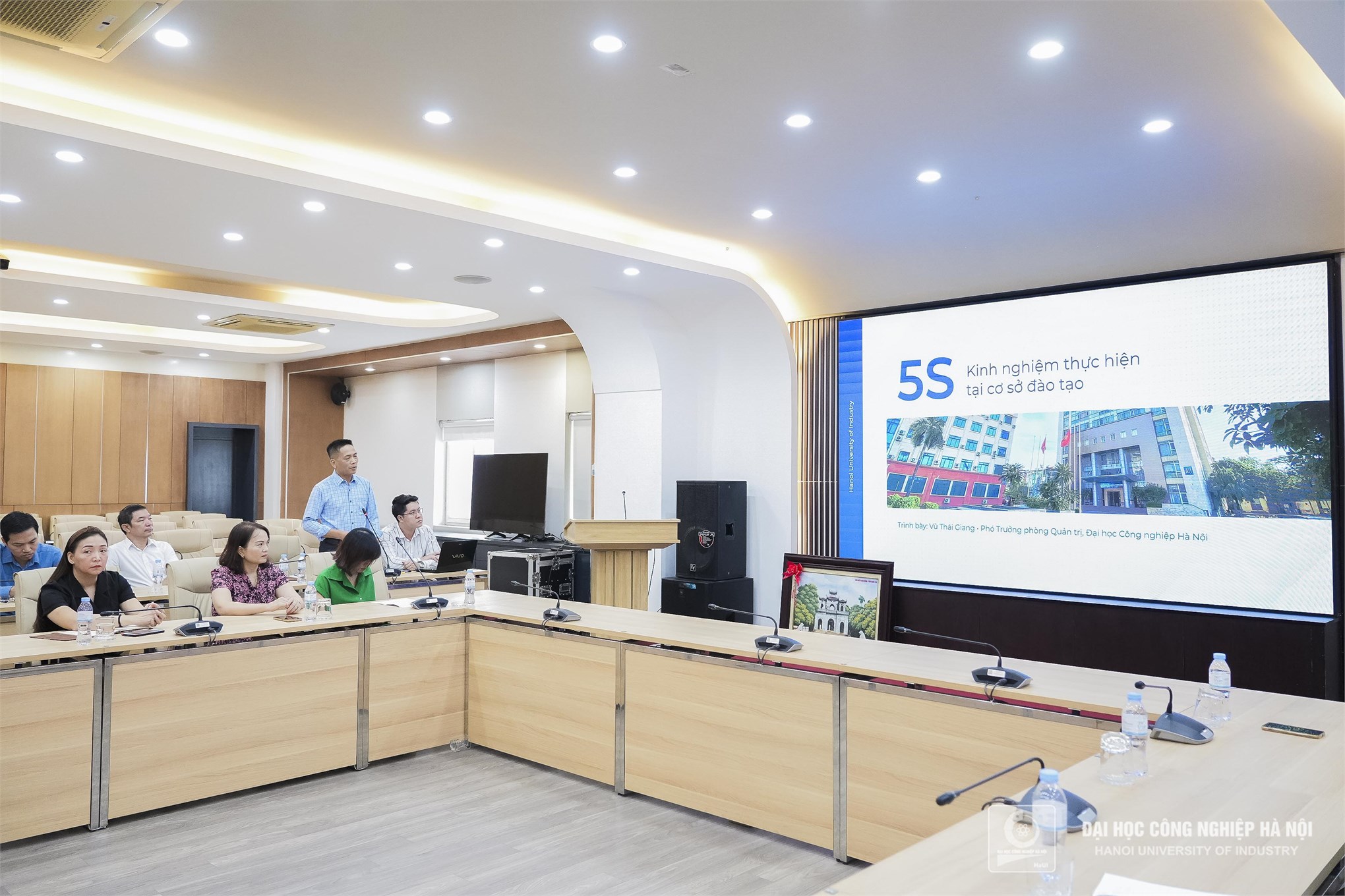 Ông Vũ Thái Giang - Phó Trưởng phòng Quản trị, Phó Ban 5S nhà trường chia sẻ kinh nghiệm thực hiện 5S tại Đại học Công nghiệp Hà Nội