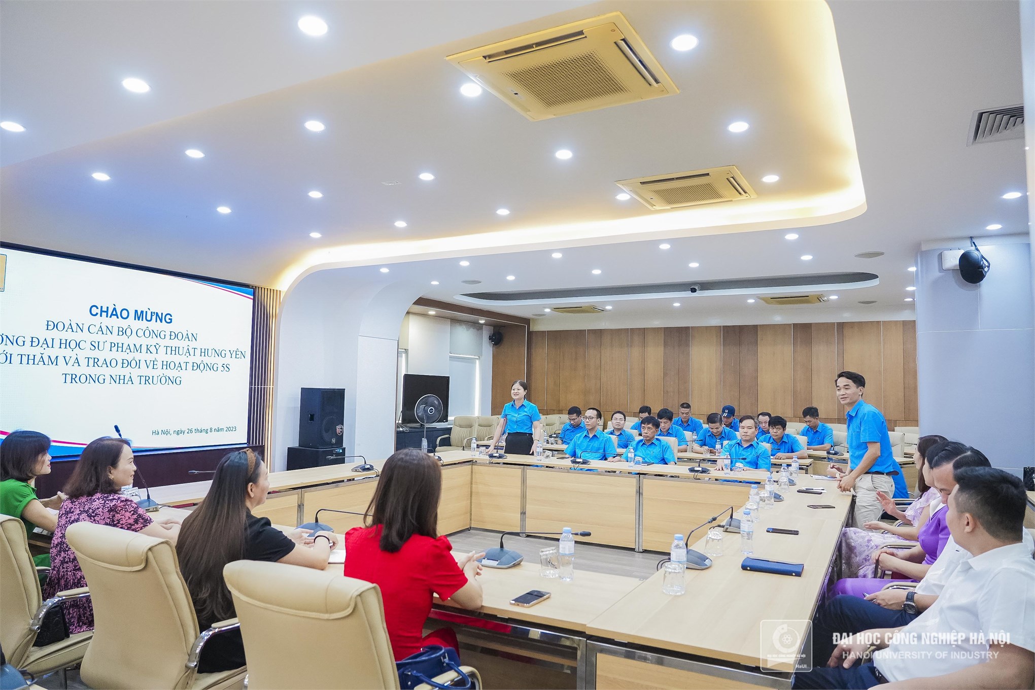 Sáng ngày 26/8, đoàn cán bộ Công đoàn Trường Đại học Sư phạm kỹ thuật Hưng Yên đã có buổi đến thăm quan và làm việc, học tập mô hình 5S của Đại học Công nghiệp Hà Nội.