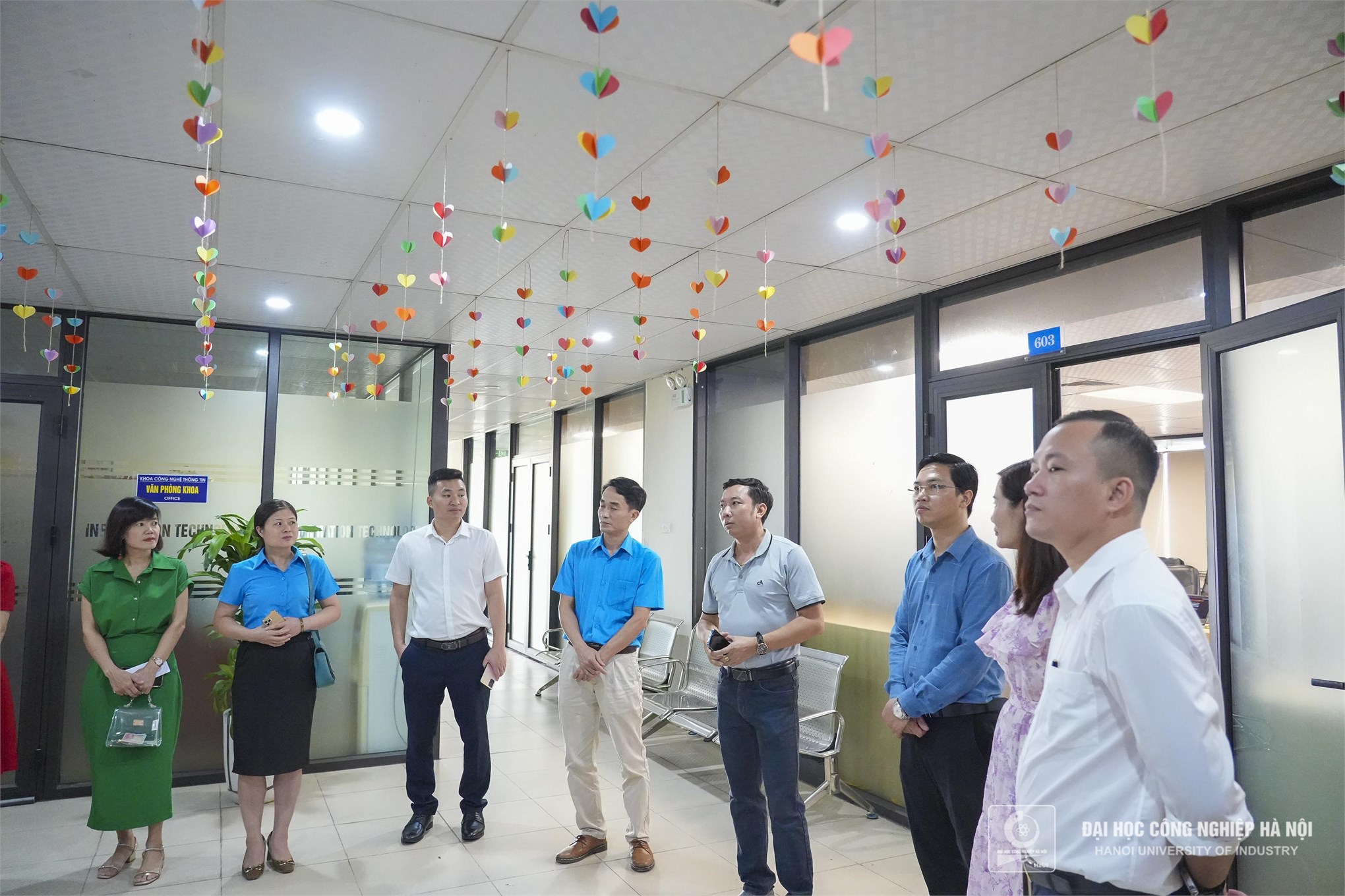 Sau buổi làm việc, đoàn cũng đã đi thăm quan các khoa Công nghệ thông tin, Điện tử, Phòng Tổ chức Hành chính… và một số phòng ban khác trong trường.