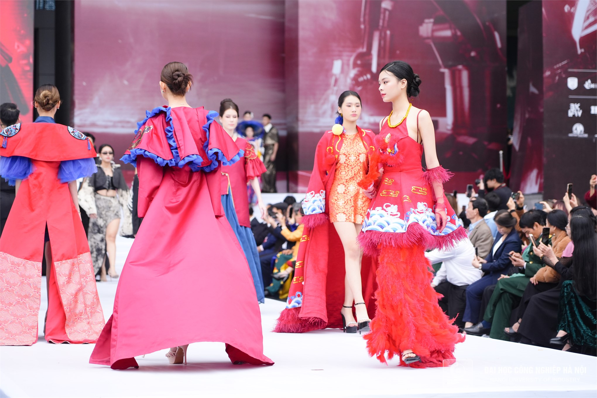 Bộ sưu tập “Hồn Việt” của sinh viên ngành Thiết kế Thời trang Trường Đại học Công nghiệp Hà Nội được trình diễn tại Global Student Fashion Week 2025, không chỉ tôn vinh vẻ đẹp văn hóa dân gian mà còn khẳng định sức sống của nghệ thuật truyền thống trong hơi thở thời trang đương đại. Thông qua sự kết hợp giữa màu sắc ấn tượng, họa tiết truyền thống và chất liệu hiện đại, bộ sưu tập mong muốn truyền tải thông điệp về sức sống của những giá trị văn hoá, nghệ thuật của quá khứ vẫn luôn là nguồn cảm hứng trong tư duy sáng tạo của thế hệ trẻ ngày nay. Sự giao thoa giữa truyền thống và hiện đại đã tạo nên những thiết kế đầy tính nghệ thuật và bản sắc dân tộc. Bộ sưu tập hướng đến thị trường trong nước, mang thông điệp quảng bá văn hóa Việt Nam đến bạn bè quốc tế, góp phần bảo tồn và phát triển di sản dân gian trong dòng chảy thời trang hiện đại.