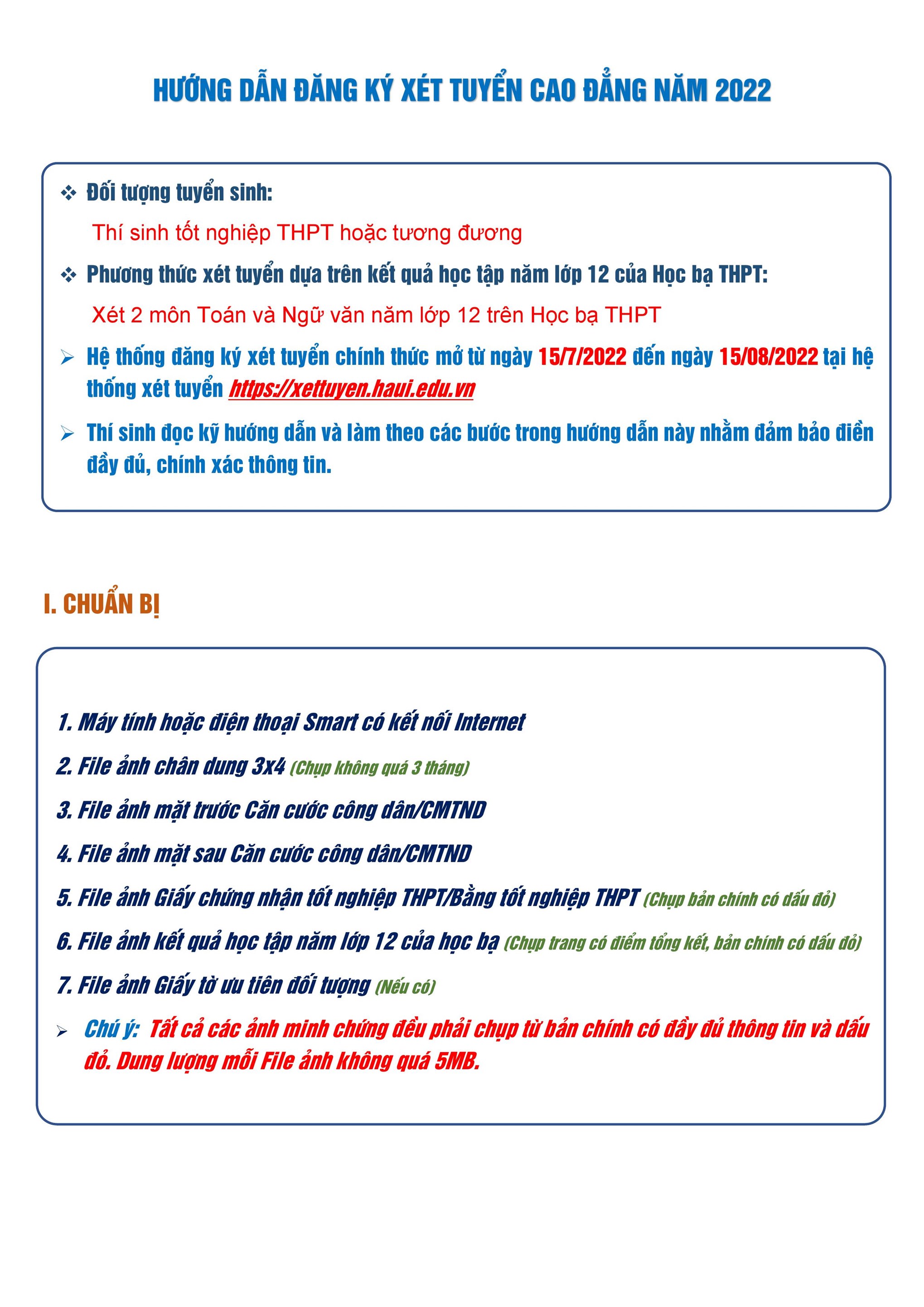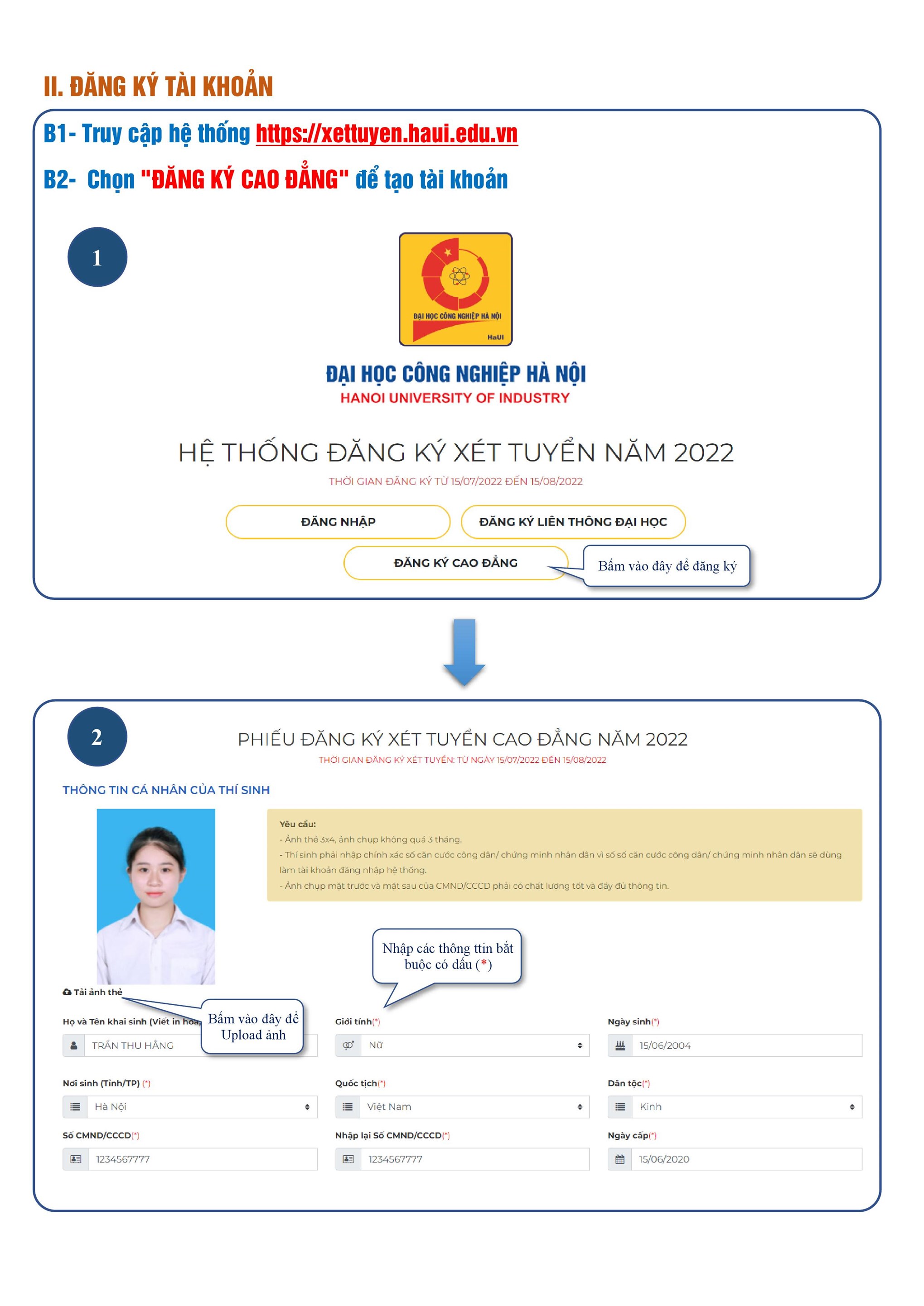 Hướng dẫn đăng ký xét tuyển Cao đẳng năm 2022 tại Đại học Công nghiệp Hà Nội.
