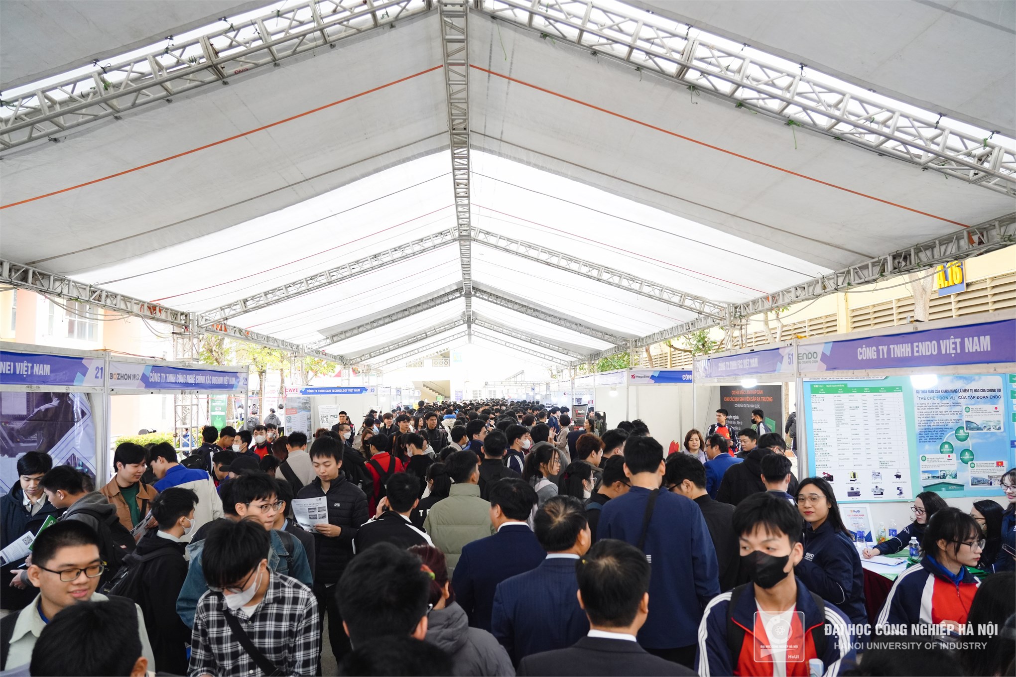 Ngày hội việc làm Trường Đại học Công nghiệp Hà Nội năm 2025 diễn ra ngày 29/03 với gần 70 doanh nghiệp tham gia thuộc nhiều lĩnh vực: thiết kế vi mạch bán dẫn, gia công cơ khí chính xác, thiết kế & thi công công trình cơ điện, hạ tầng viễn thông và xây dựng dân dụng, sản xuất linh kiện ô tô, dệt, nhuộm vải,… Đây là sự kiện sự kiện tuyển dụng lớn được các doanh nghiệp và sinh viên HaUI mong chờ, đồng thời là cầu nối quan trọng giữa nhà trường và doanh nghiệp, góp phần thúc đẩy sự phát triển về nguồn nhân lực chất lượng cao cho đất nước.