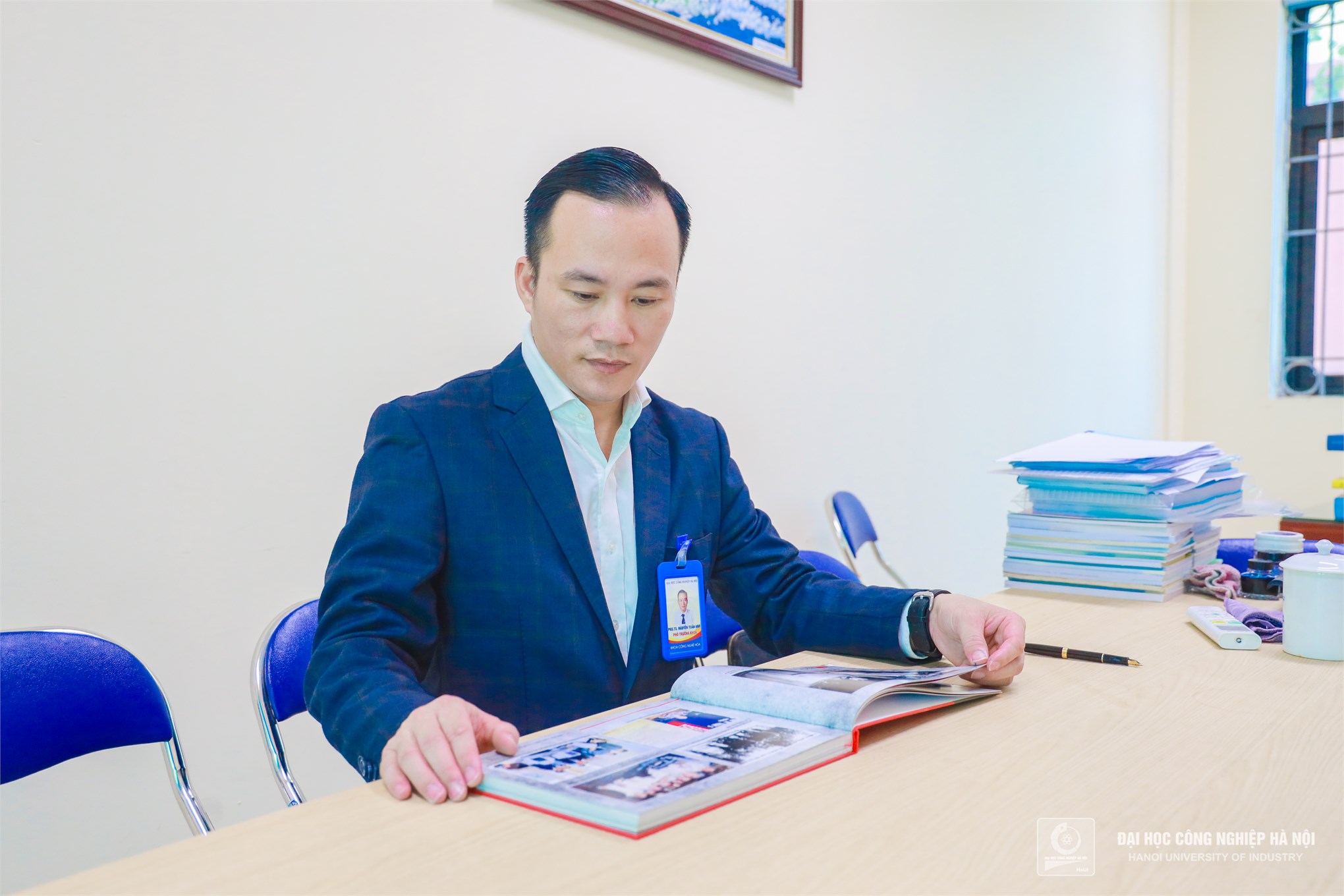 18 năm ấy biết bao tình cảm với Đại học Công nghiệp Hà Nội, thầy cảm thấy yêu và gắn bó với nghề giáo nhiều đến thế. Trong suốt cuộc nói chuyện với chúng tôi, gương mặt thầy sáng ngời niềm hãnh diện, tự hào khi cầm trên tay cuốn sử “Những dấu ấn trên hành trình phát triển của Đại học Công nghiệp Hà Nội”. Thầy tâm sự: Tôi luôn tự hào khi được gắn bó với ngôi trường có bề dày lịch sử 125 năm hình thành và phát triển. Lật lại từng trang lịch sử về Nhà trường, mới thấy công lao của các thế hệ đi trước thật vĩ đại. Sợi chỉ đỏ xuyên suốt 125 năm qua là mục tiêu để thầy theo đuổi những giá trị lịch sử tốt đẹp, kiên trì tự thúc đẩy bản thân thông qua việc không ngừng học hỏi đồng nghiệp, các thế hệ đi trước để góp phần tô thắm thêm bảng vàng thành tích của Đại học Công nghiệp Hà Nội.