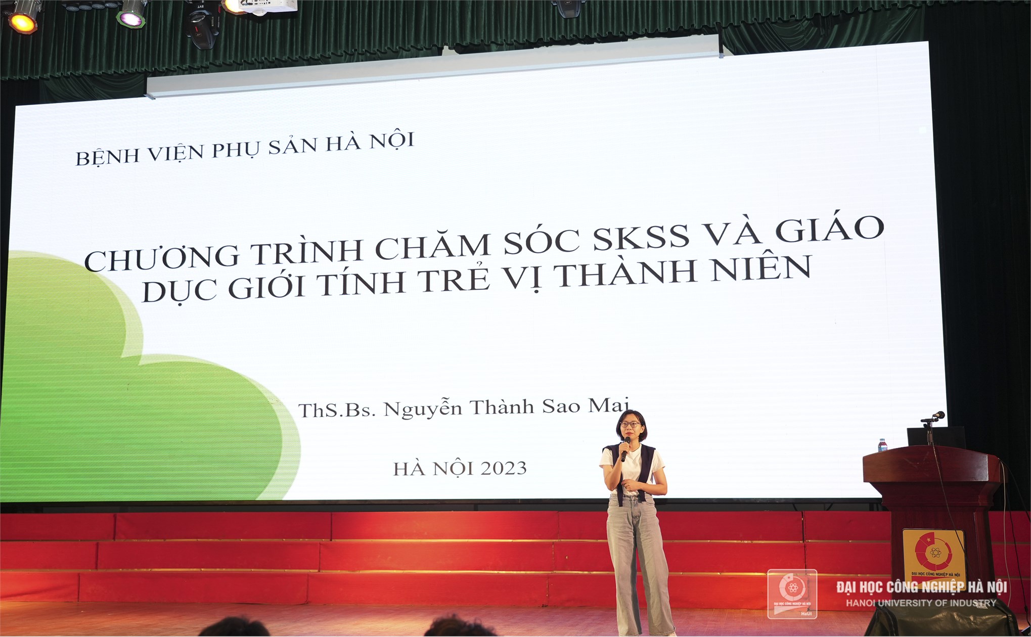 Cũng trong chương trình, bác sĩ Nguyễn Thành Sao Mai – Bệnh viện Phụ sản Hà Nội cũng dành thời gian chia sẻ và cung cấp những kiến thức về chăm sóc sức khỏe sinh sản và giáo dục giới tính đối với sinh viên.