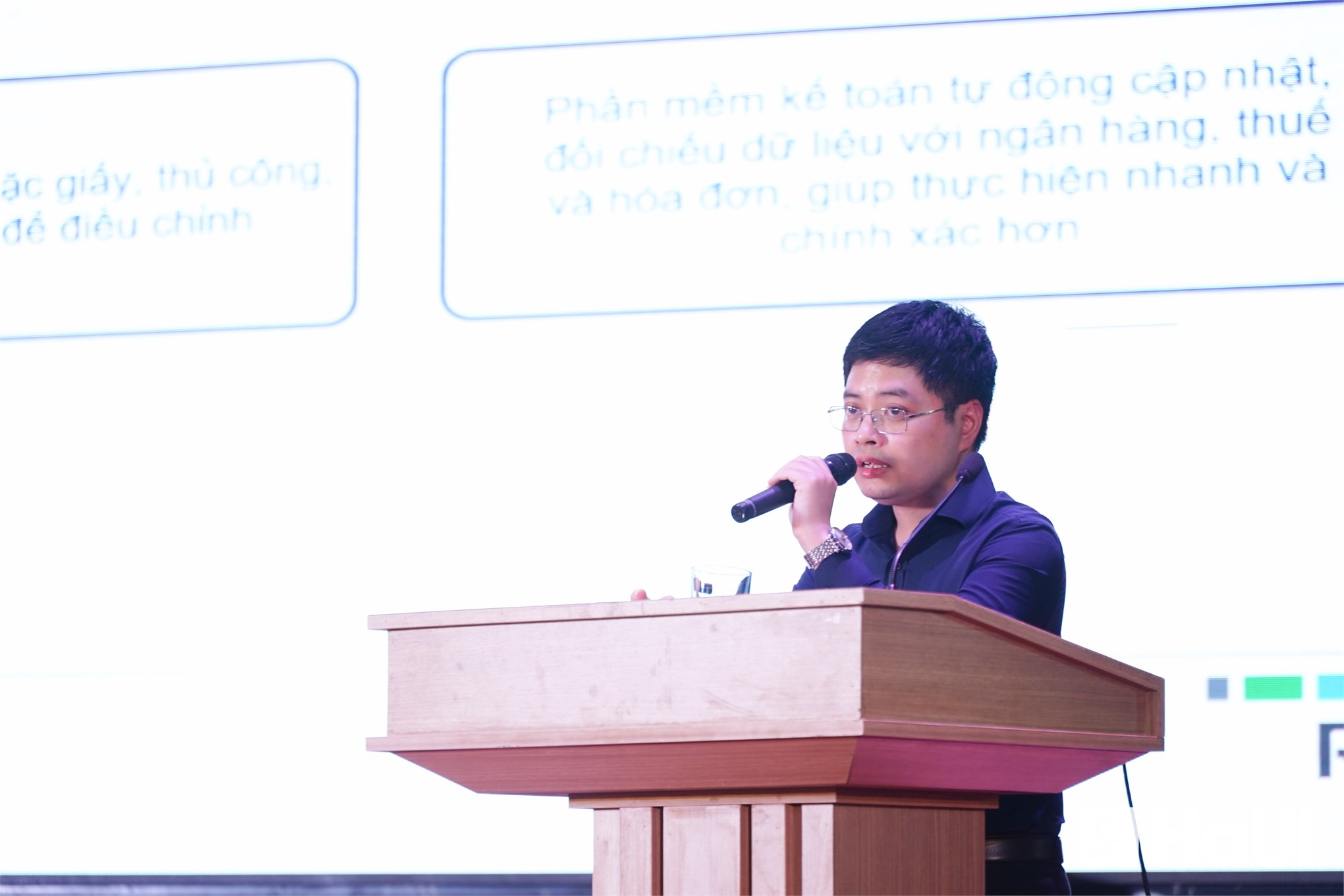 Ông Bùi Mạnh Quân - Phó Giám đốc dịch vụ Thuế & Tư vấn - Công ty TNHH Kiểm toán & Tư vấn RSM Việt Nam - Chi nhánh Hà mang đến chủ đề “Thực trạng áp dụng công nghệ trong lĩnh vực kế toán, kiểm toán trong kỷ nguyên AI”