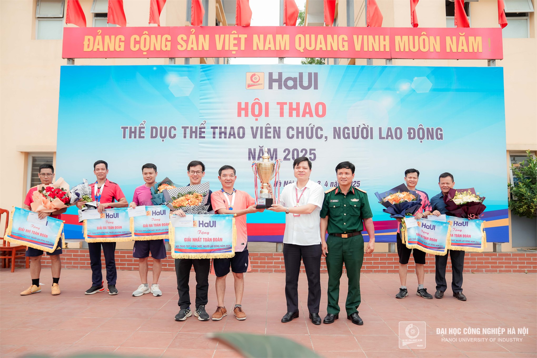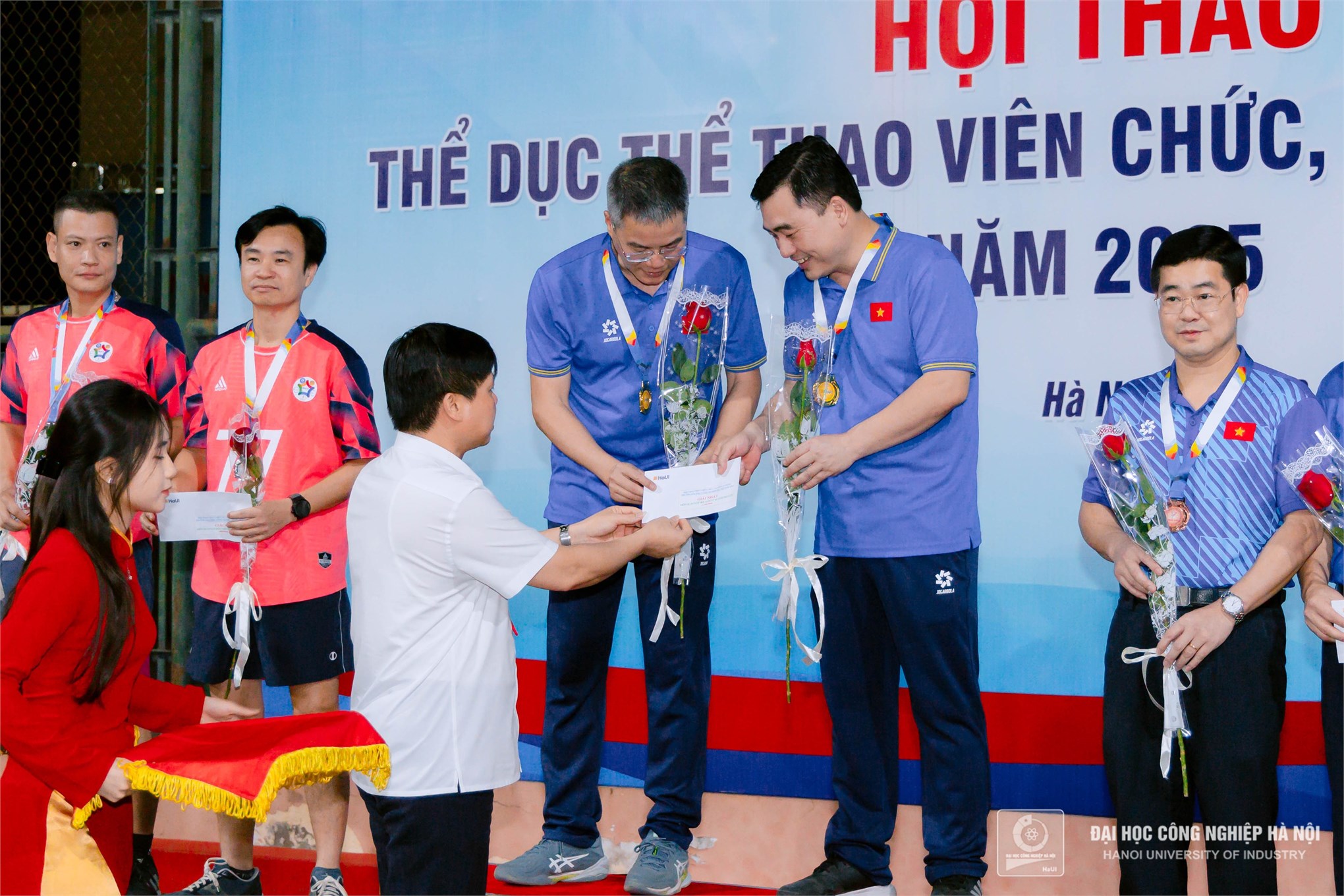 PGS.TS.Phạm Văn Đông - Phó Hiệu trưởng HaUI, Chủ tịch Công đoàn, Trưởng Ban tổ chức Hội thao trao giải toàn đoàn cho 6 liên quân tham dự Hội thao 2025