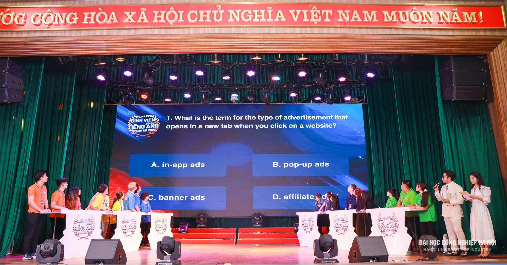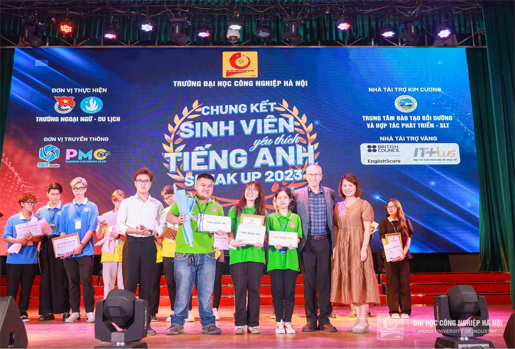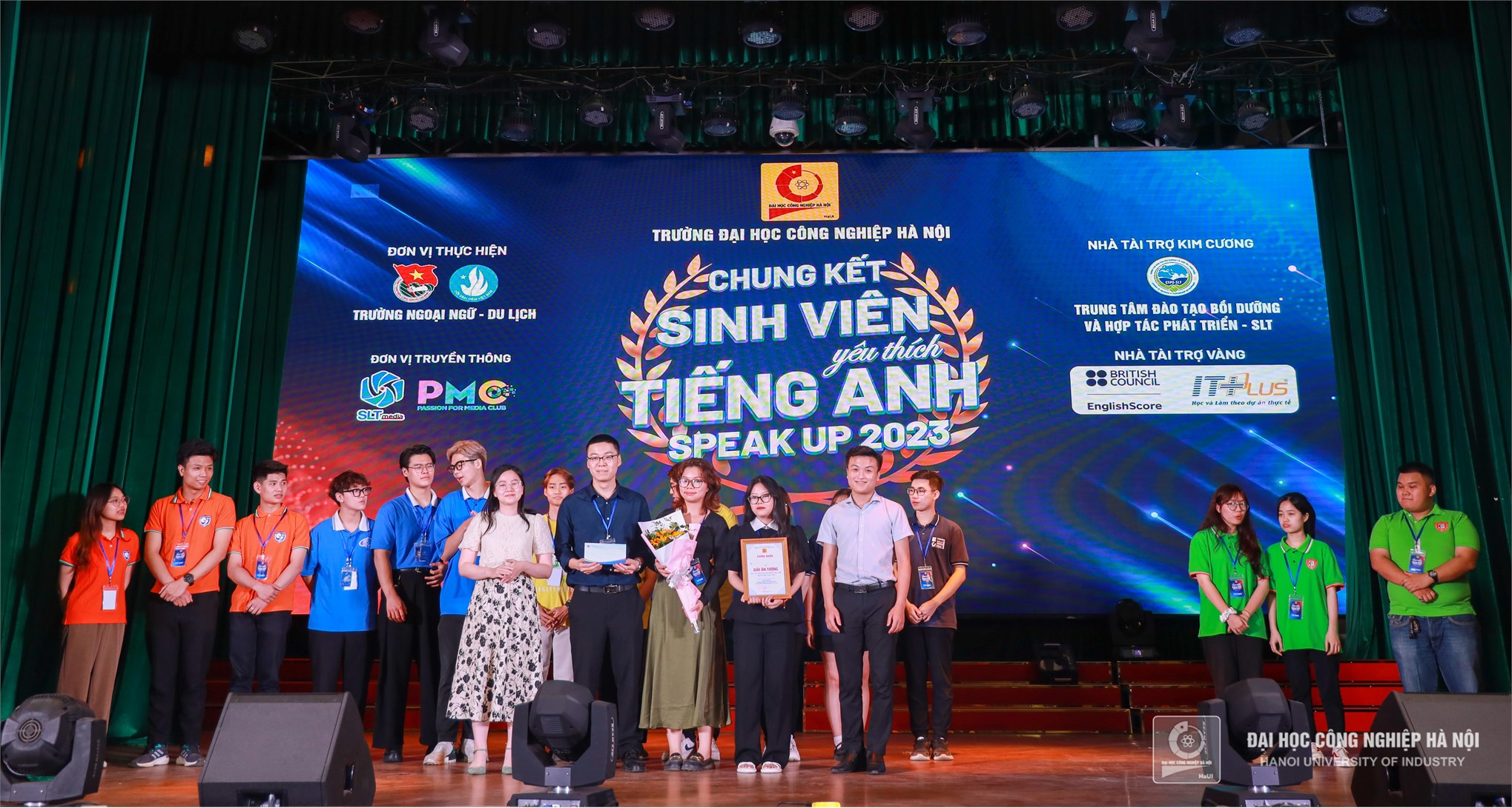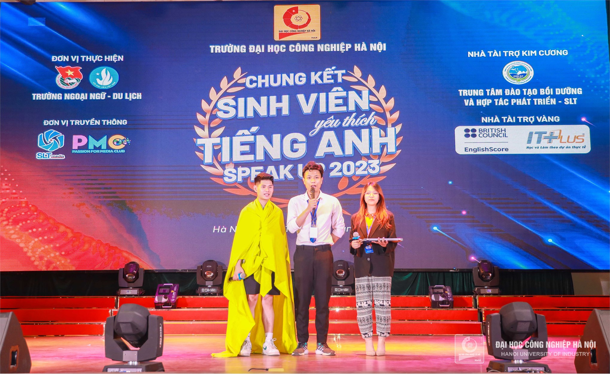 Tối ngày 11/5, cuộc thi Sinh viên yêu thích tiếng Anh “Speak Up” năm 2023 đã diễn ra đêm thi Chung kết tại Hội trường A11, trường Đại học Công nghiệp Hà Nội.
