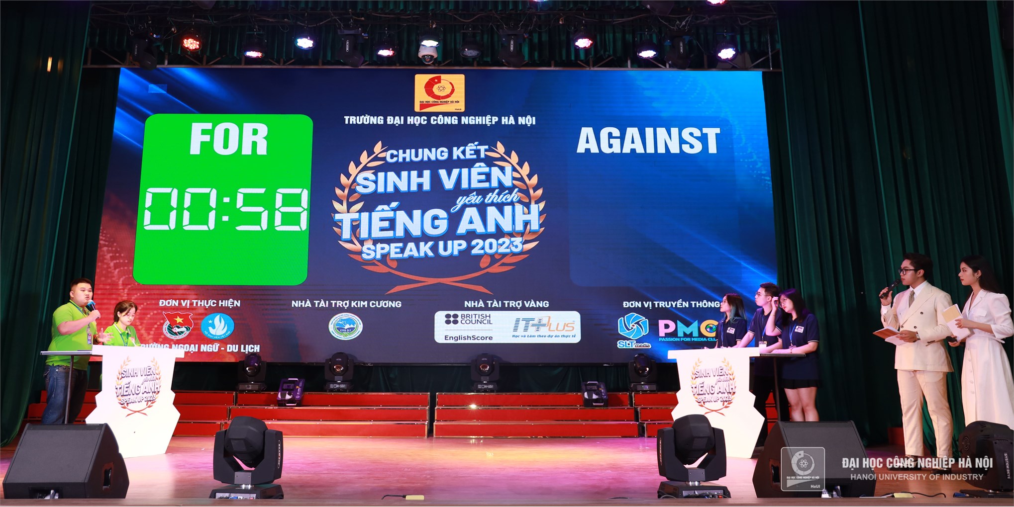 Tại đêm chung kết, các đội thi đã thể hiện khả năng tiếng Anh và kỹ năng thuyết trình trước đám đông, đưa ra luận điểm rõ ràng, lí lẽ sắc bén, dẫn chứng cụ thể, những đề xuất thú vị cùng màn đối đáp nảy lửa và đầy sức thuyết phục. Đội Griffins đến từ Đại học Công nghiệp Hà Nội đã xuất sắc vượt qua các đối thủ còn lại để giành ngôi vị quán quân tại cuộc thi Sinh viên yêu thích tiếng Anh “Speak Up” năm 2023.