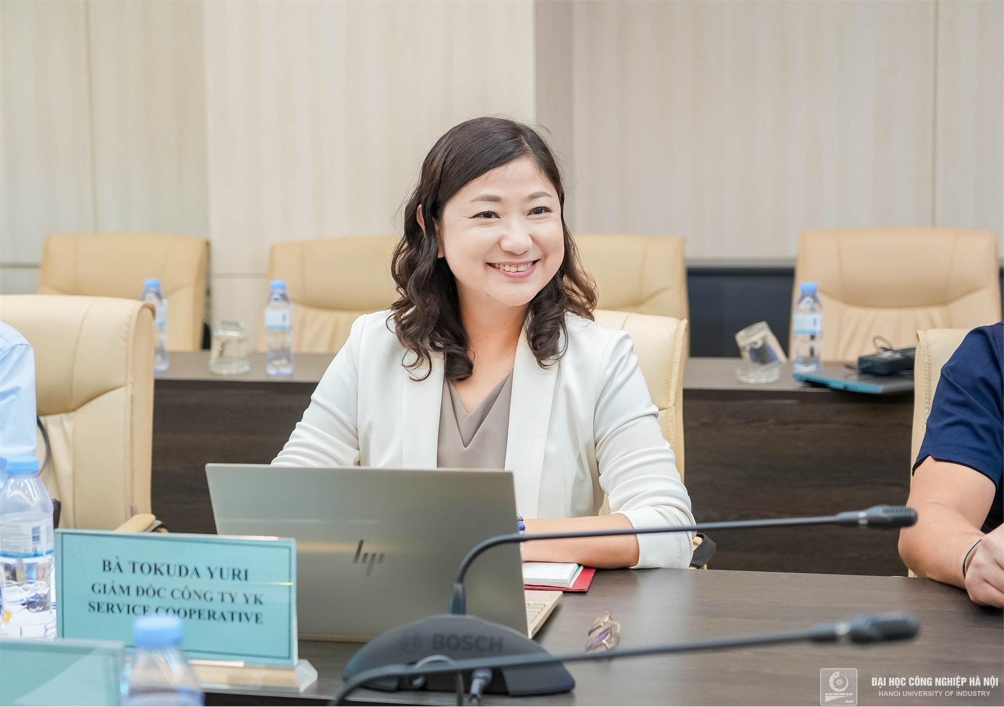 Tại buổi làm việc, bà Tokuda Yuri - Giám đốc Công ty YK Service Cooperative – đơn vị hoạt động trong lĩnh vực kết nối thực tập sinh kỹ thuật nước ngoài đến với thị trường Nhật Bản cũng bày tỏ mong muốn được hợp tác với Trường Đại học Công nghiệp Hà Nội để đưa nguồn nhân lực chất lượng cao của nhà trường đến với các doanh nghiệp của Nhật Bản, đặc biệt các doanh nghiệp trong lĩnh vực Cơ khí, Ô tô và Điện tử.