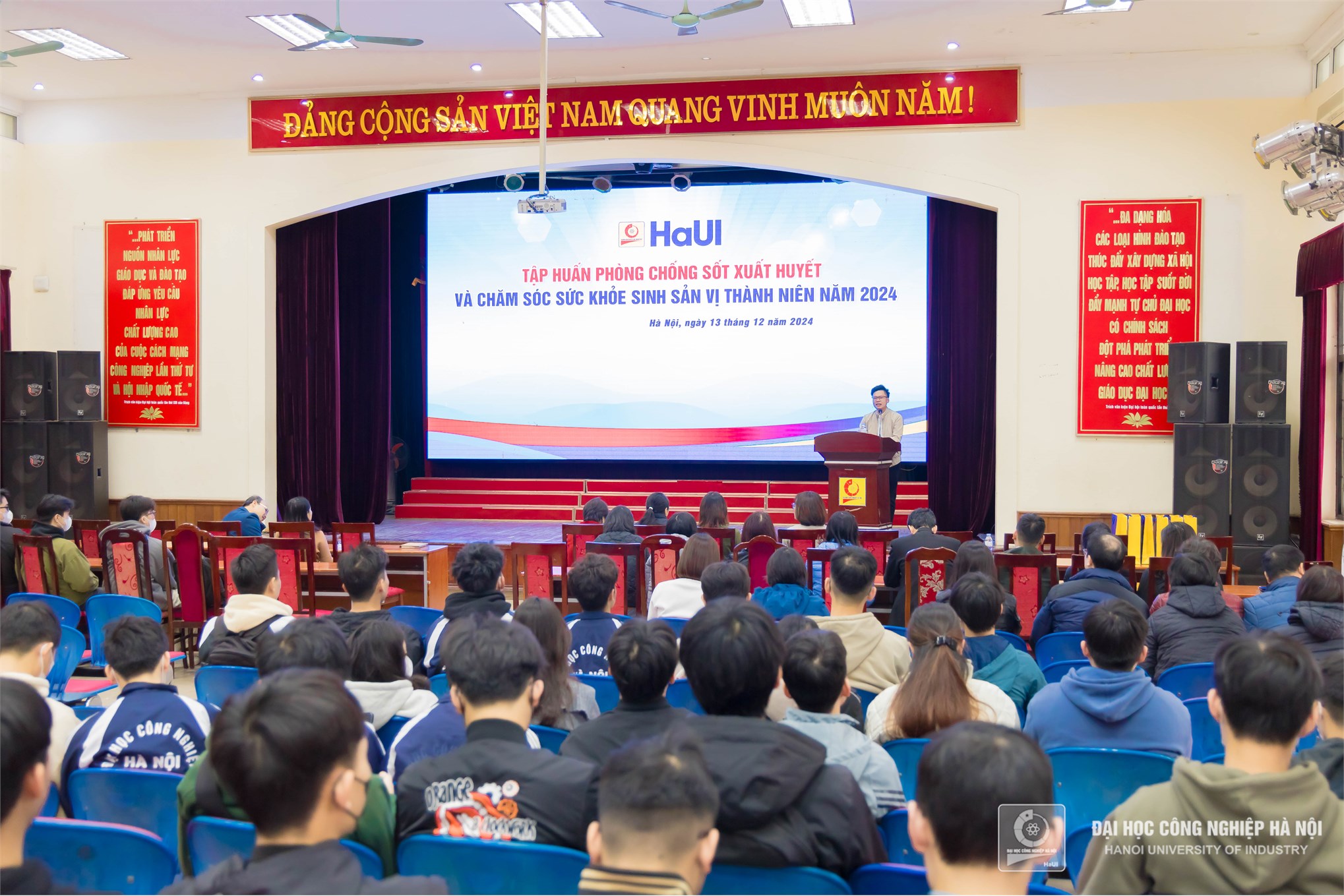 Sáng ngày 13/12/2024, hơn 100 viên chức, người lao động, sinh viên Trường Đại học Công nghiệp Hà Nội tham dự chương trình tập huấn phòng chống sốt xuất huyết và sức khỏe sinh sản vị thành niên.