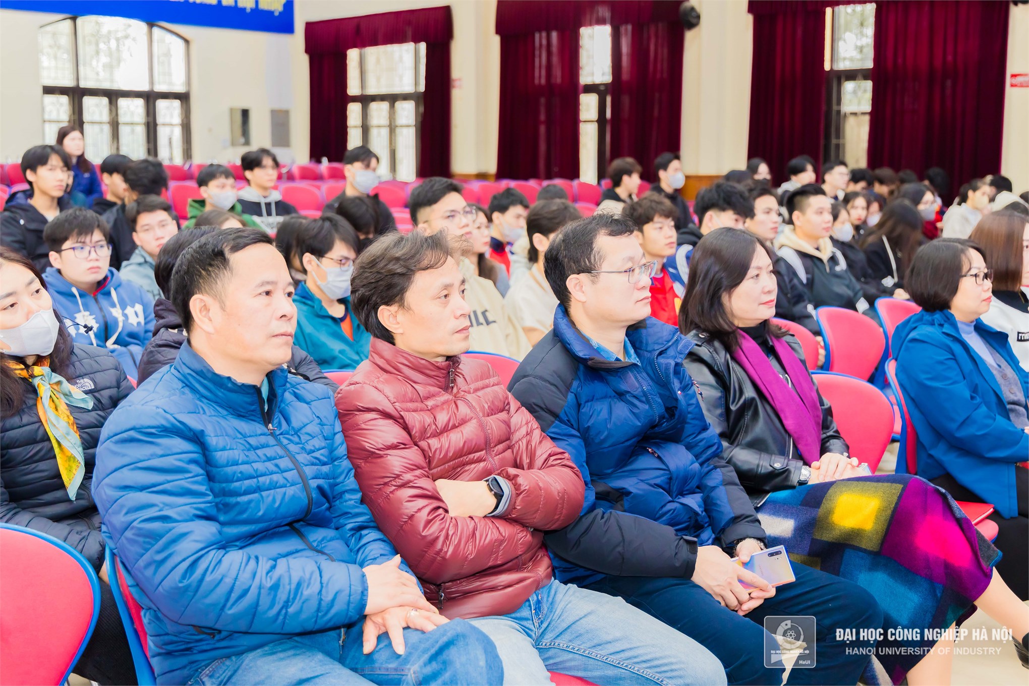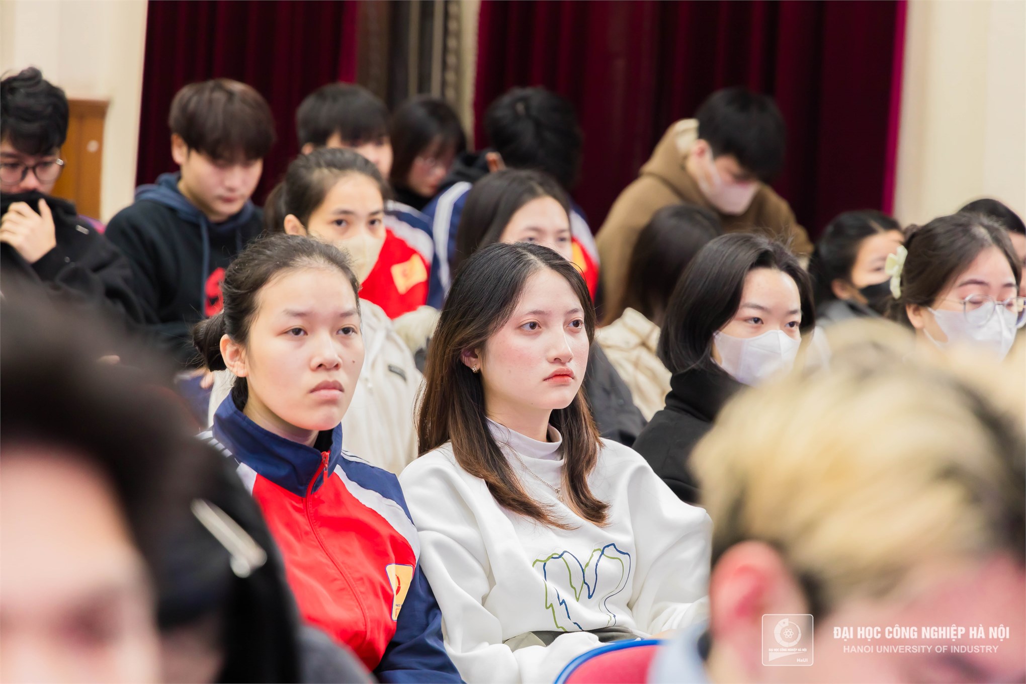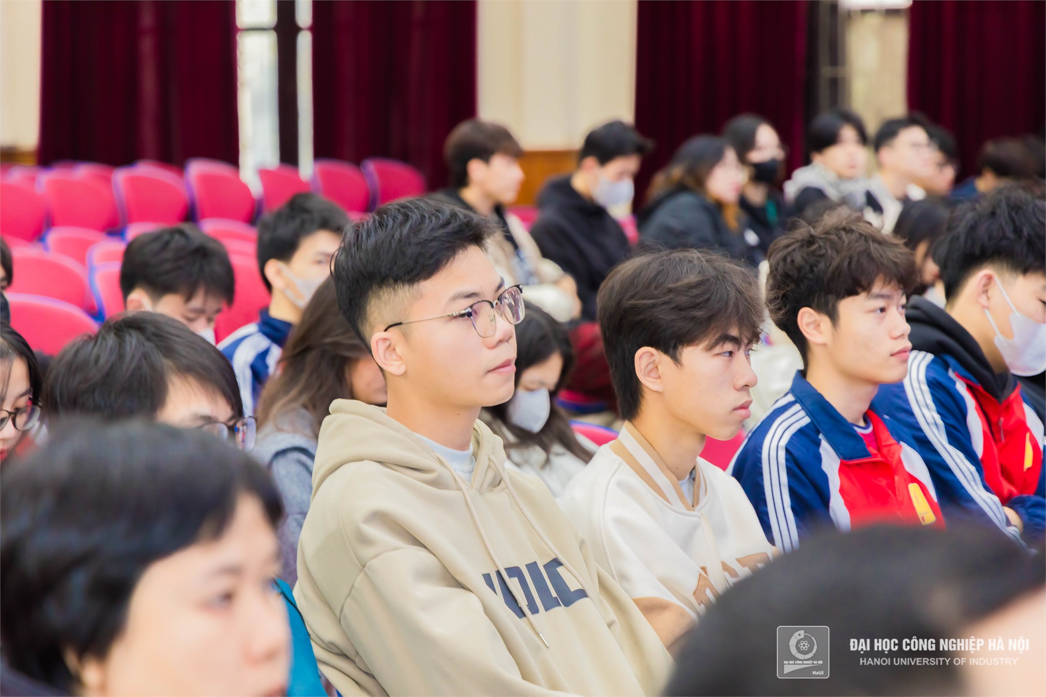 Sinh viên Trường Đại học Công nghiệp Hà Nội theo dõi chương trình.
