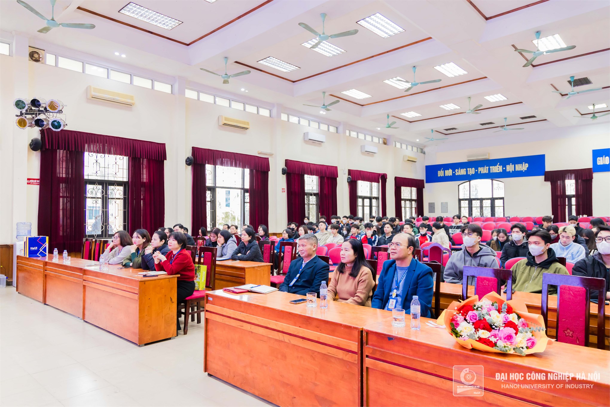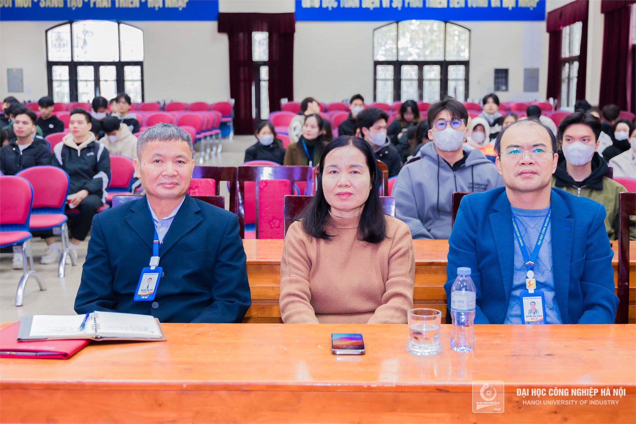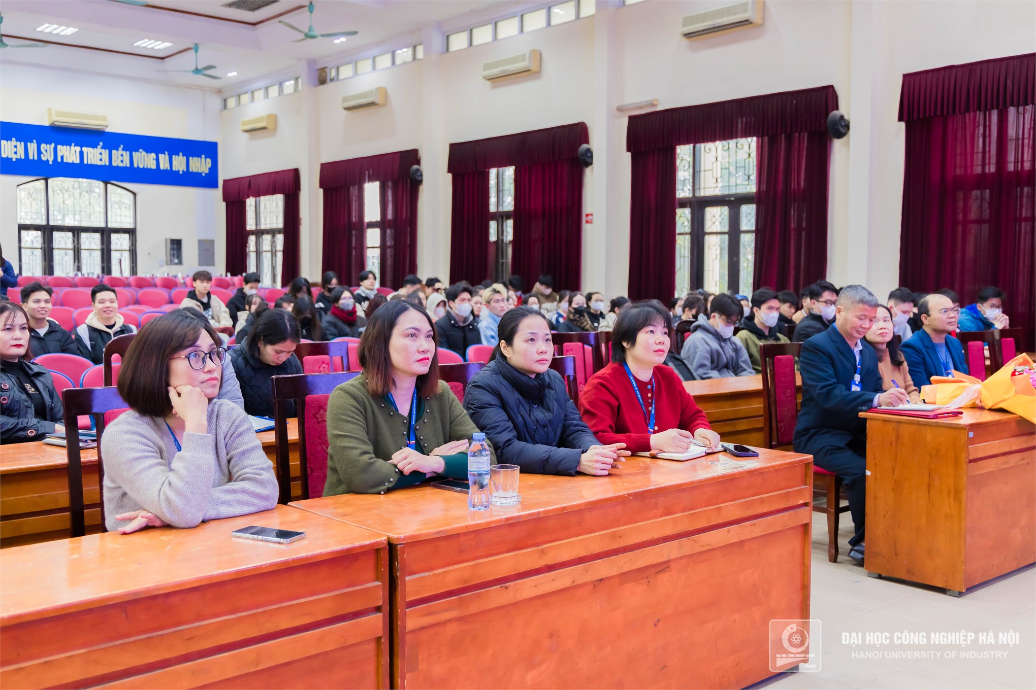 Sinh viên Trường Đại học Công nghiệp Hà Nội theo dõi chương trình.