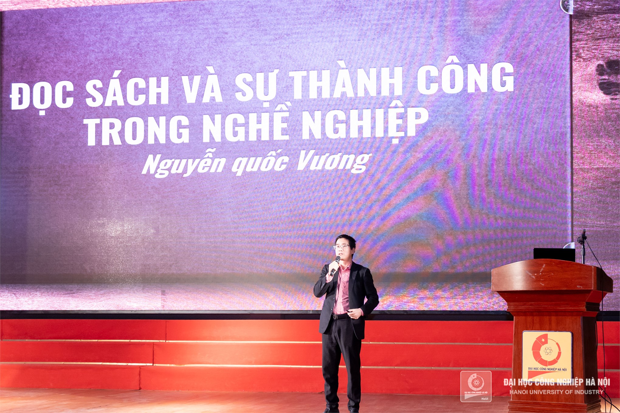 Một trong những điểm nhấn của sự kiện là phần chia sẻ của diễn giả Nguyễn Quốc Vương - nhà nghiên cứu giáo dục và văn hóa đọc và tác giả Tô Giang. Các diễn giả đã mang đến những góc nhìn sâu sắc về ý nghĩa của việc đọc sách trong thời đại số, đồng thời hướng dẫn sinh viên cách đọc sách hiệu quả, chọn lựa tài liệu phù hợp và áp dụng kiến thức từ sách vào thực tiễn cuộc sống.