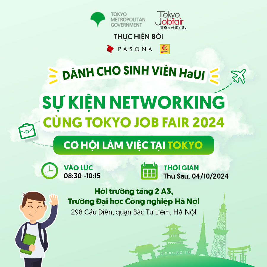 Với mong muốn tạo cơ hội việc làm cho sinh viên cũng như tăng cường hợp tác giữa Trường Đại học Công nghiệp Hà Nội với các doanh nghiệp tại Tokyo Nhật Bản, Nhà trường phối hợp tổ chức chương trình Tokyo Job Fair 2024 trong 4 ngày: 28-29/9 và 4-5/10/2024.