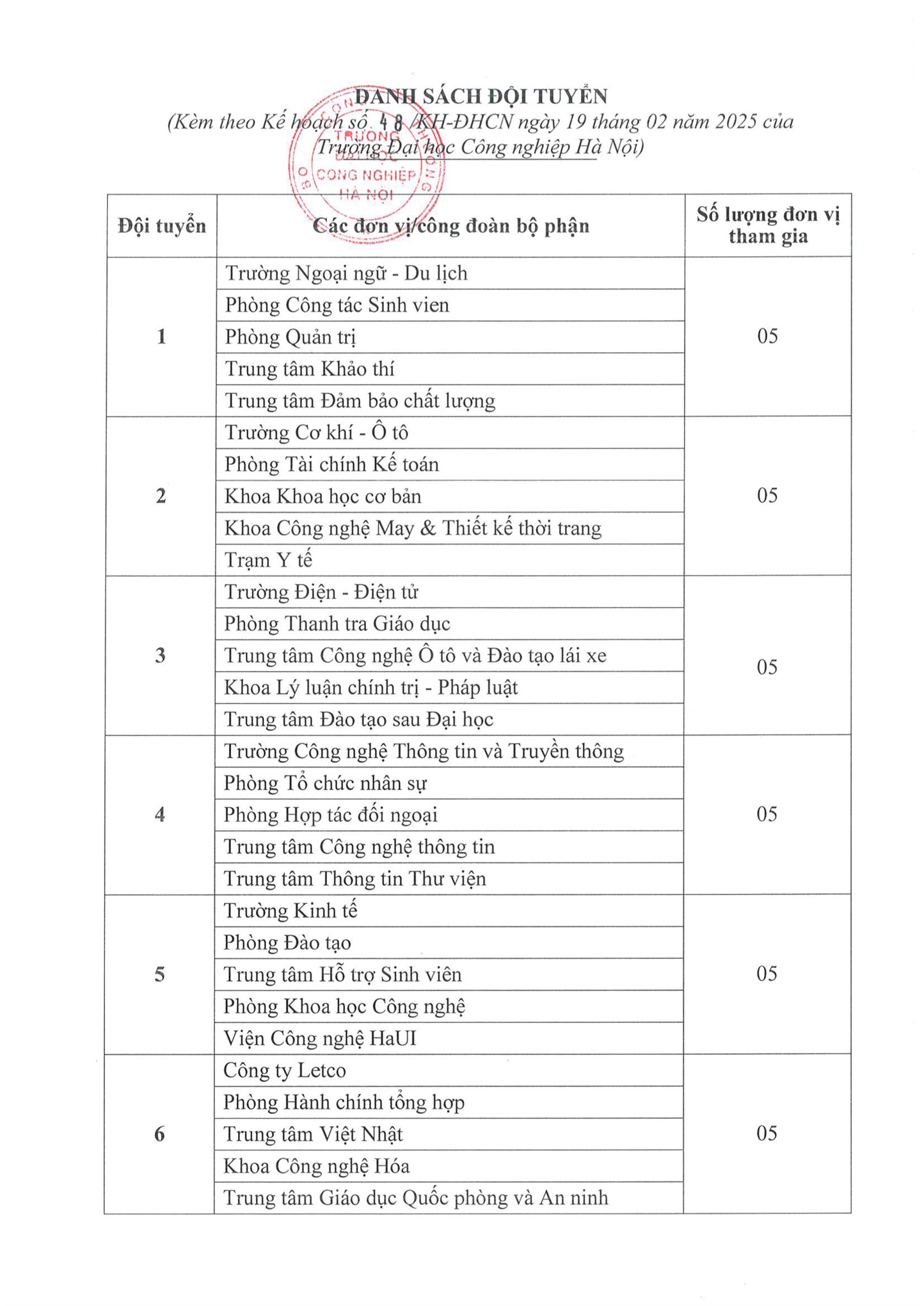 Trường Đại học Công nghiệp Hà Nội thông báo kế hoạch Tổ chức Hội thao thể dục thể thao viên chức, người lao động Trường Đại học Công nghiệp Hà Nội năm 2025.