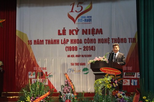 Ông Ngô Đức Vĩnh - Trưởng khoa Khoa Công nghệ thông tin cảm ơn sự quan tâm, tin tưởng của Ban Giám hiệu Nhà trường đã dành cho tập thể khoa.