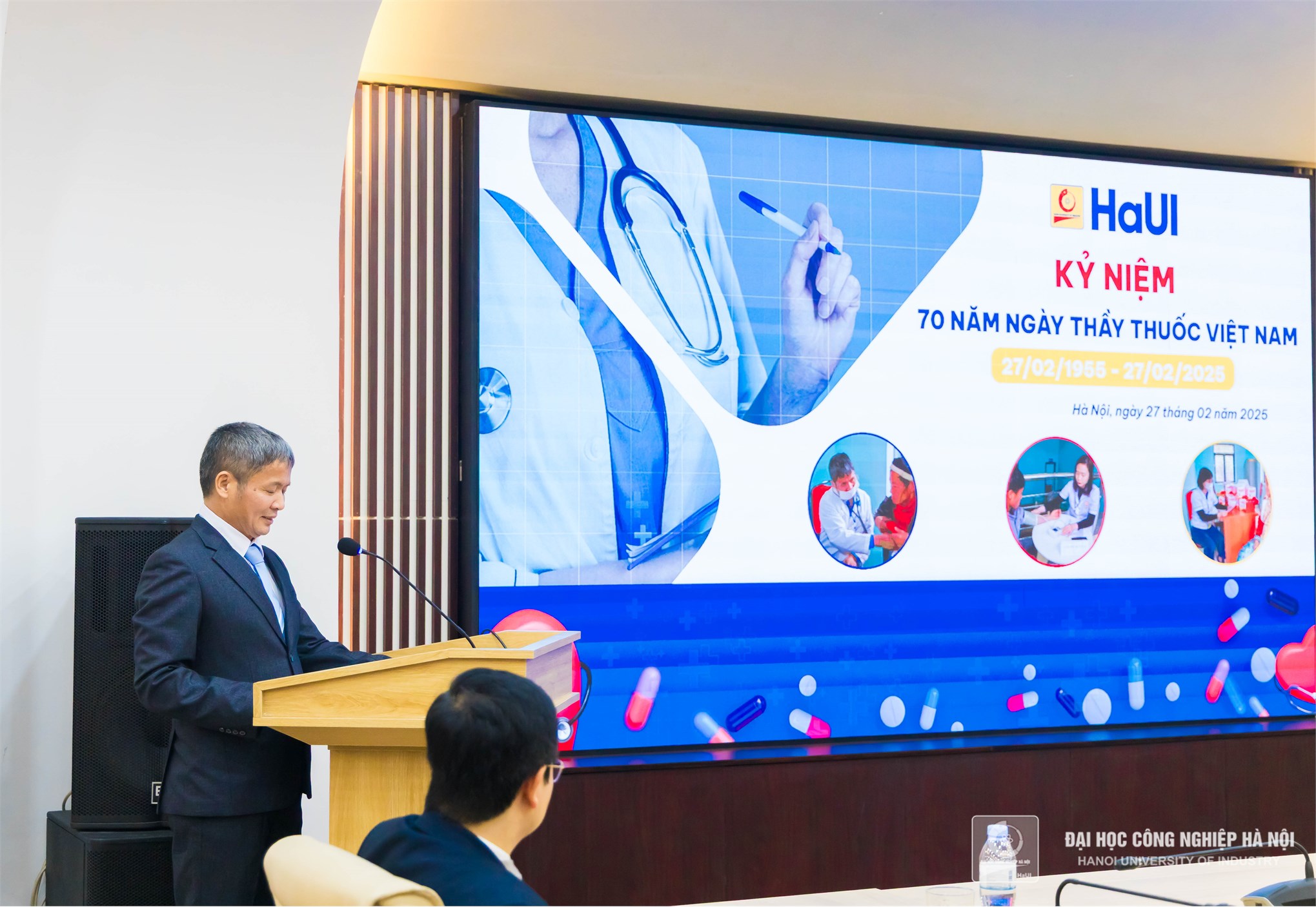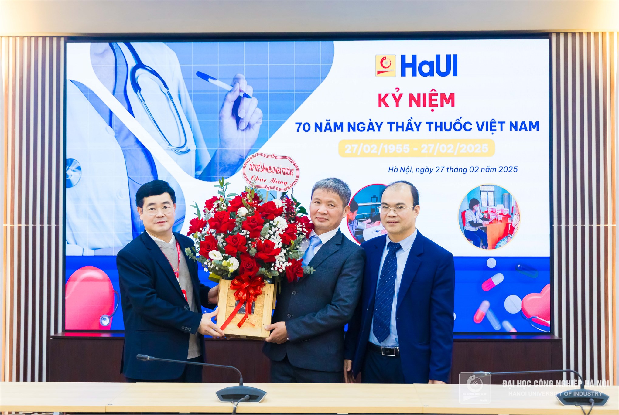Nhân dịp kỷ niệm 70 năm Ngày Thầy thuốc Việt Nam, TS. Nguyễn Văn Thiện - Phó Hiệu trưởng Trường Đại học Công nghiệp Hà Nội gửi những lời chúc mừng tốt đẹp nhất đến đội ngũ y, bác sĩ của Trạm Y tế; Nhà trường ghi nhận, biểu dương và đánh giá cao những nỗ lực, cống hiến của các y, bác sĩ Trạm Y tế trong việc chăm sóc sức khoẻ cho viên chức, người lao động và người học của nhà trường trong suốt thời gian qua.