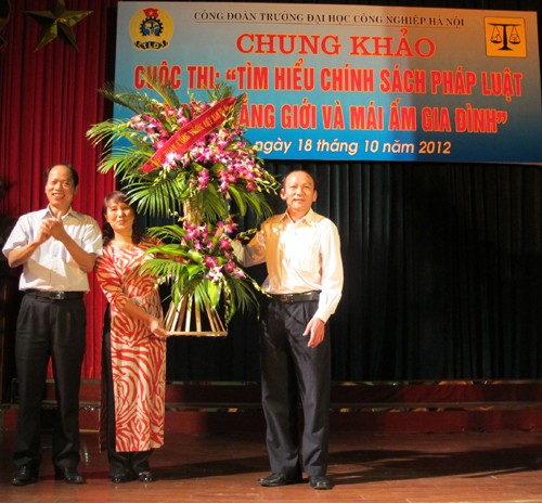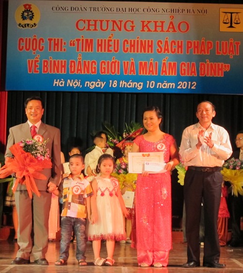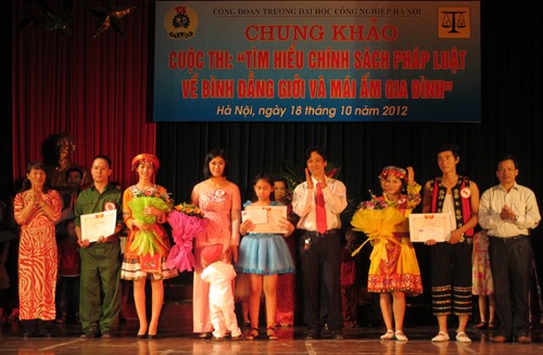 Hướng tới chào mừng kỷ niệm 115 năm ngày truyền thống nhà trường, chào mừng đại hội Công đoàn Công Thương lần thứ 2, đại hội Công đoàn trường lần thứ 7 và ngày thành lập Hội Liên hiệp Phụ nữ Việt Nam 20 tháng 10; tối ngày 18/10/2012 tại trường Đại học Công nghiệp Hà Nội, Ban Nữ công và Công đoàn nhà trường tổ chức chung khảo Hội thi “Tìm hiểu chính sách pháp luật về bình đẳng giới và mái ấm gia đình”.