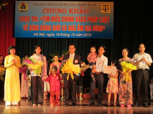 Hội thi “Tìm hiểu chính sách pháp luật về bình đẳng giới và mái ấm gia đình” được tổ chức từ ngày 17/10 đến ngày 18/10/2012, thu hút 12 gia đình là cán bộ, viên chức nhà trường tham gia. Qua vòng thi sơ khảo, Ban tổ chức đã chọn 6 gia đình tiêu biểu vào vòng chung khảo. Mỗi gia đình đã trải qua 3 phần thi: giới thiệu, bốc thăm trả lời câu hỏi và thi năng khiếu.