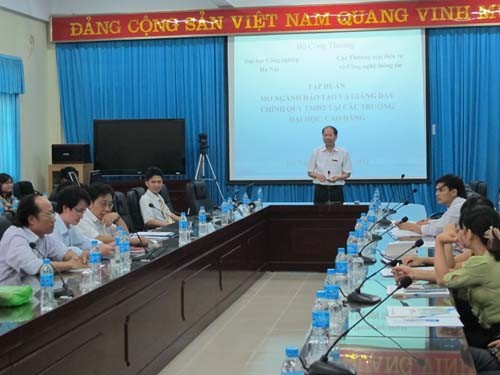 Tại buổi tập huấn, các đại biểu đã được nghe TS. Nguyễn Mạnh Quyền giới thiệu về chủ trương, chính sách và định hướng phát triển đào tạo TMĐT như: Thông tư số 08/2011/TT - BGDĐT ngày 17 tháng 2 năm 2011của Bộ trưởng Bộ Giáo dục và Đào tạo quy định điều kiện, hồ sơ, quy trình mở ngành đào tạo; Công văn số 2196/BGDĐT - GDĐH ngày 22 tháng 4 năm 2010 của Bộ trưởng Bộ Giáo dục và Đào tạo về hướng dẫn xây dựng và công bố chuẩn đầu ra ngành đào tạo.