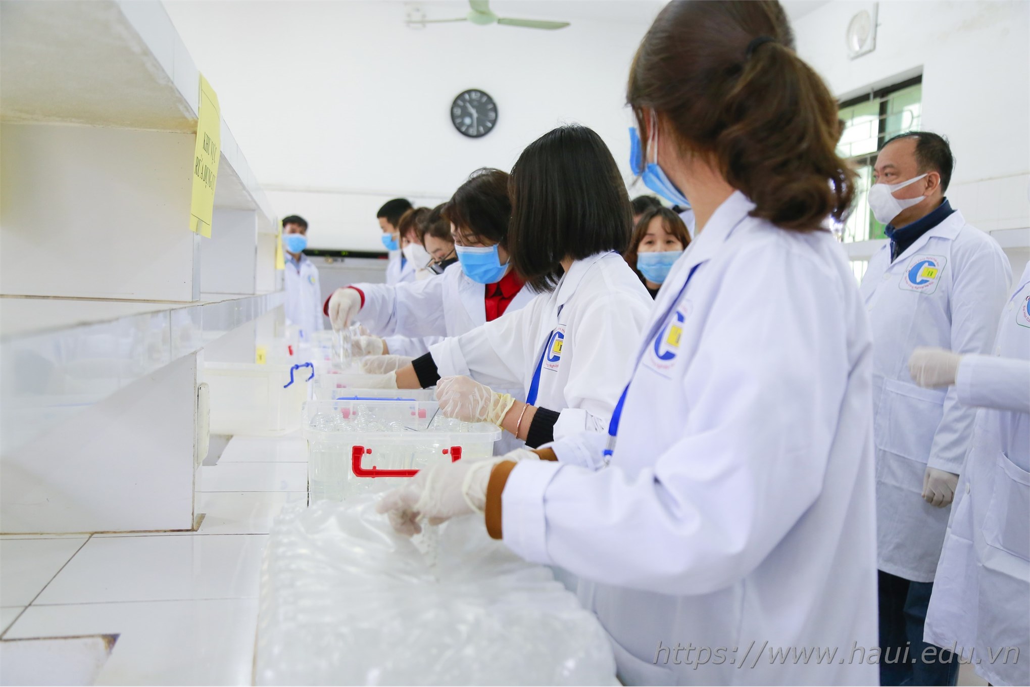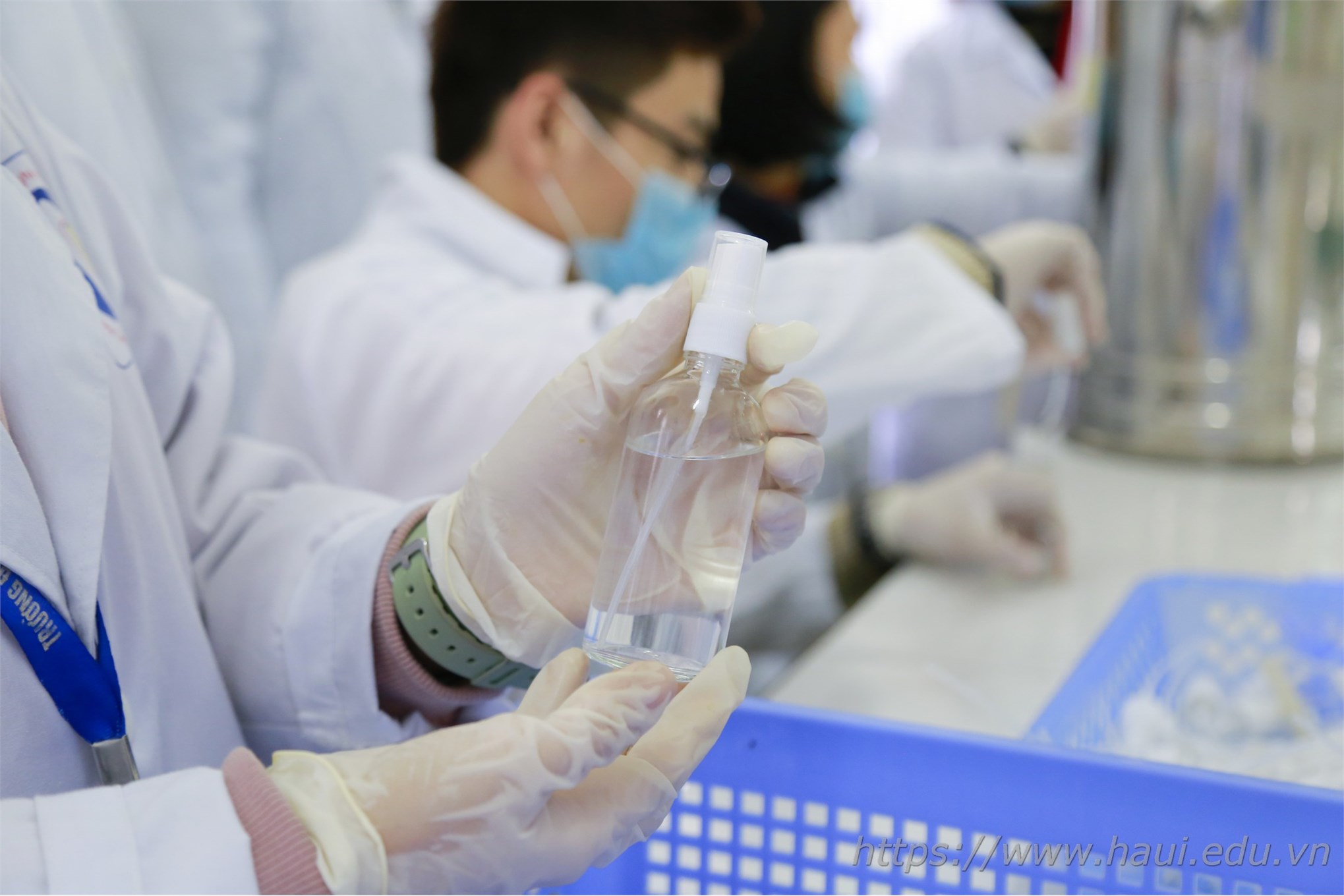 Với mục tiêu vì sức khỏe của cán bộ, giảng viên và học sinh, sinh viên, hôm nay 09/02/2020, Khoa Công nghệ Hóa - Trường ĐH Công nghiệp Hà Nội đã tiến hành sản xuất mẻ dung dịch khử khuẩn, sát trùng đầu tiên theo hướng dẫn pha chế dung dịch khử trùng, sát khuẩn phòng, chống virus Corona của WHO. Dự kiến từ ngày 10/2/2020 đến ngày 16/2/2020 sẽ sản xuất lượng lớn, trên 30.000 chai dung dịch khử khuẩn phát miễn phí cho cán bộ, giảng viên, học viên sinh viên nhà trường.