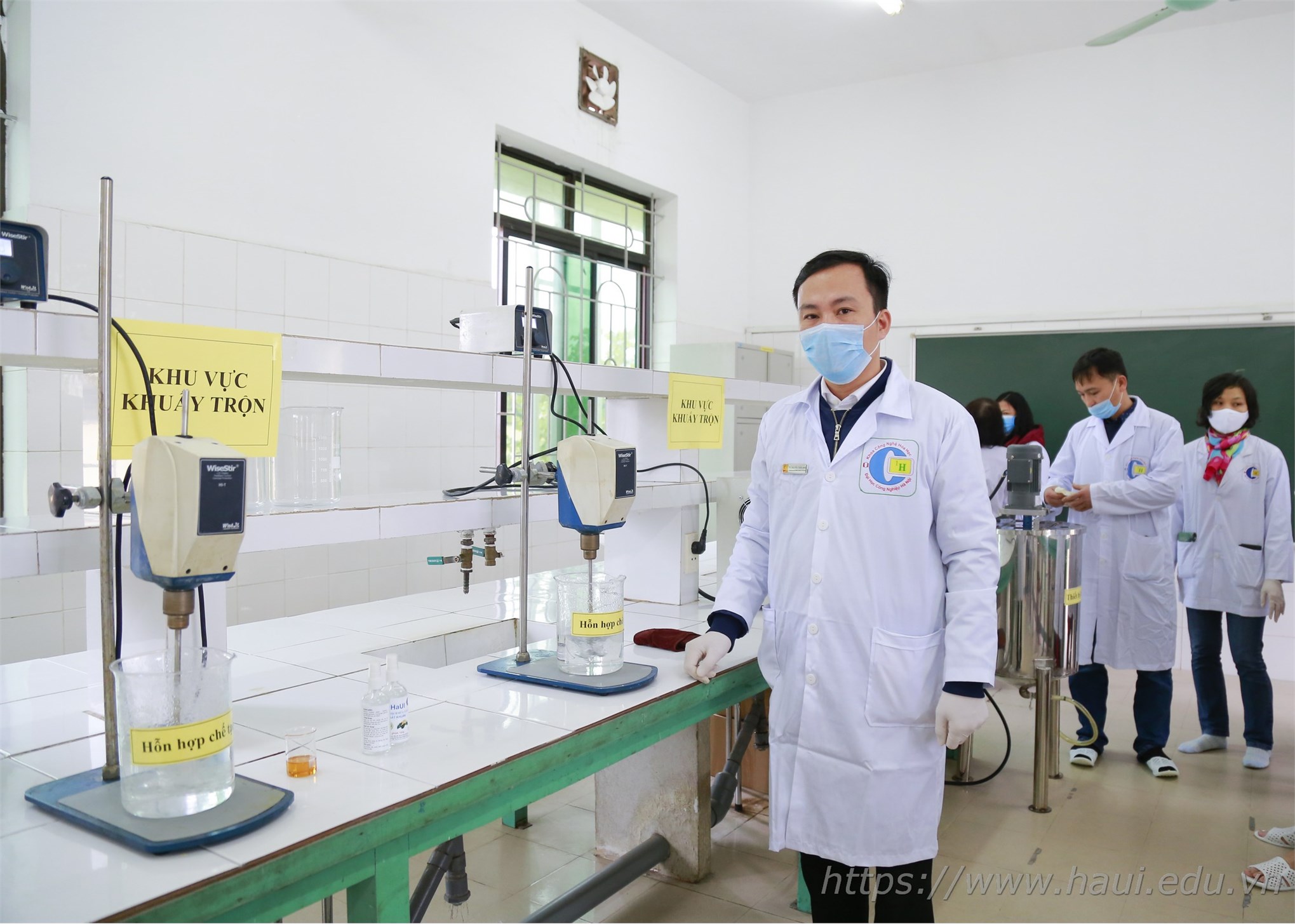 Lãnh đạo Nhà trường kiểm tra công tác sản xuất dung dịch rửa tay khô sát khuẩn tại khoa Công nghệ Hóa