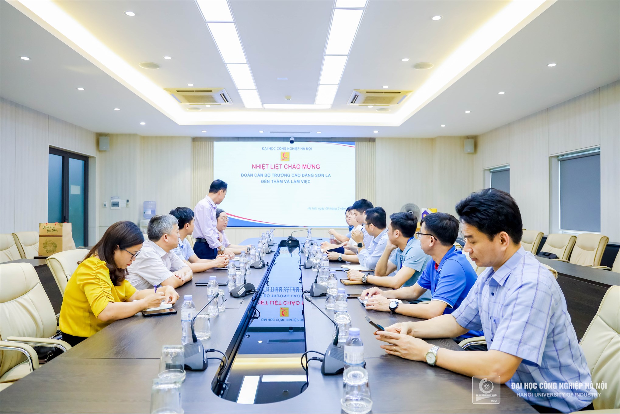 Chiều ngày 6/5, đoàn cán bộ Trường Cao đẳng Sơn La đã có buổi làm việc và gặp mặt tại Đại học Công nghiệp Hà Nội để trao đổi, chia sẻ về công tác đào tạo, bồi dưỡng và tuyển dụng giảng viên ngành công nghệ thông tin, điện, điện tử.