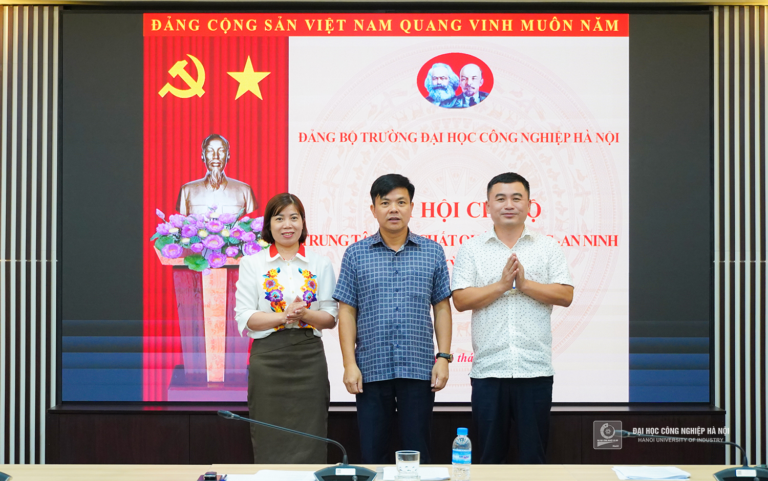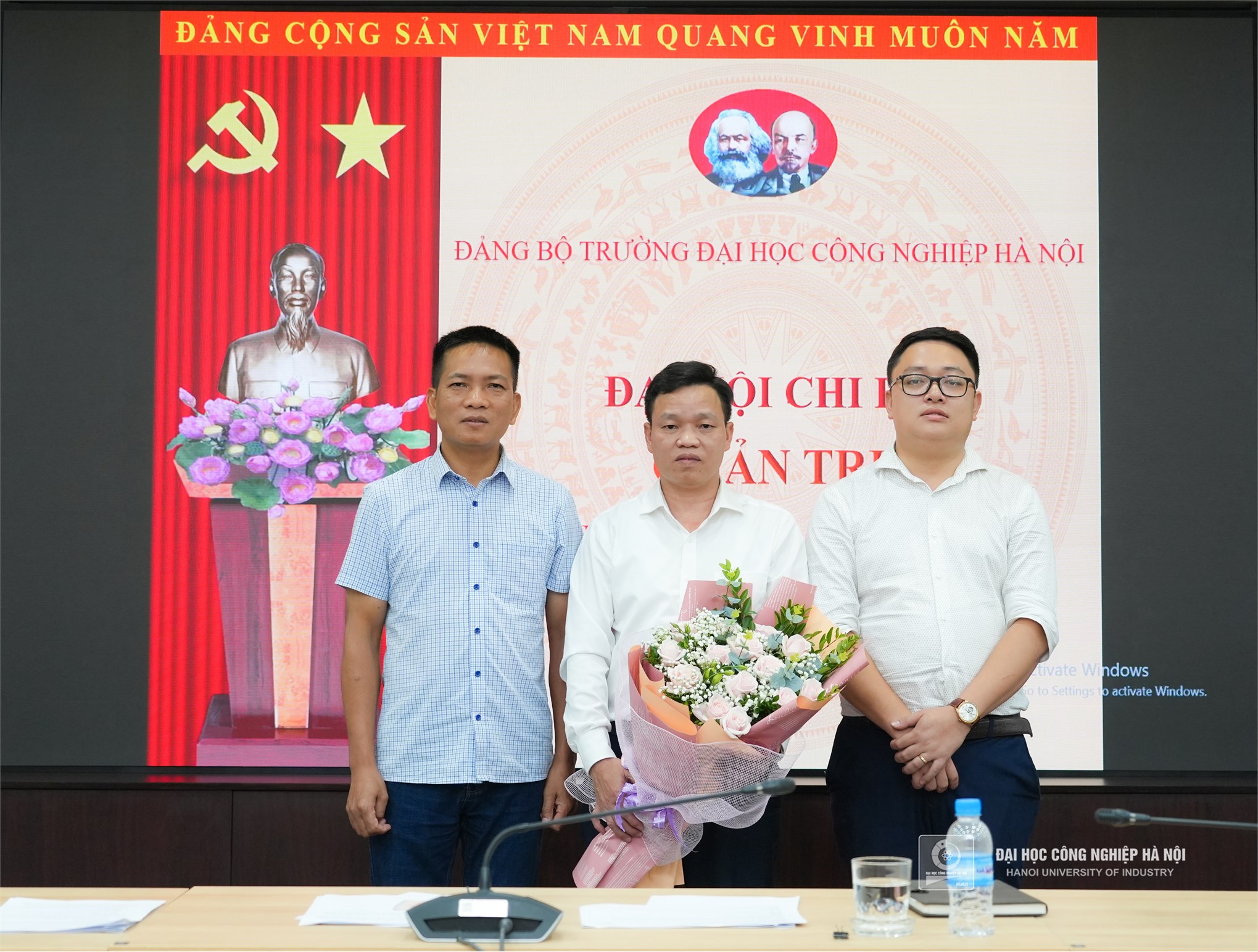PGS.TS.Phạm Văn Bổng - Phó Bí thư, Phó Hiệu trưởng nhà trường chúc mừng Chi ủy Chi bộ Khoa học Công nghệ - Viện Công nghệ HaUI nhiệm kỳ 2022 - 2025: Đ/c Phạm Văn Đông - Bí thư, đ/c Phạm Đức Cường - Phó Bí thư, đ/c Vũ Minh Tân - Chi ủy viên