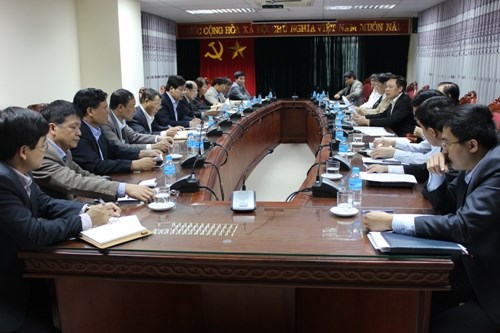 Đoàn công tác làm việc với lãnh đạo Nhà trường tại phòng họp tầng 3, A1.