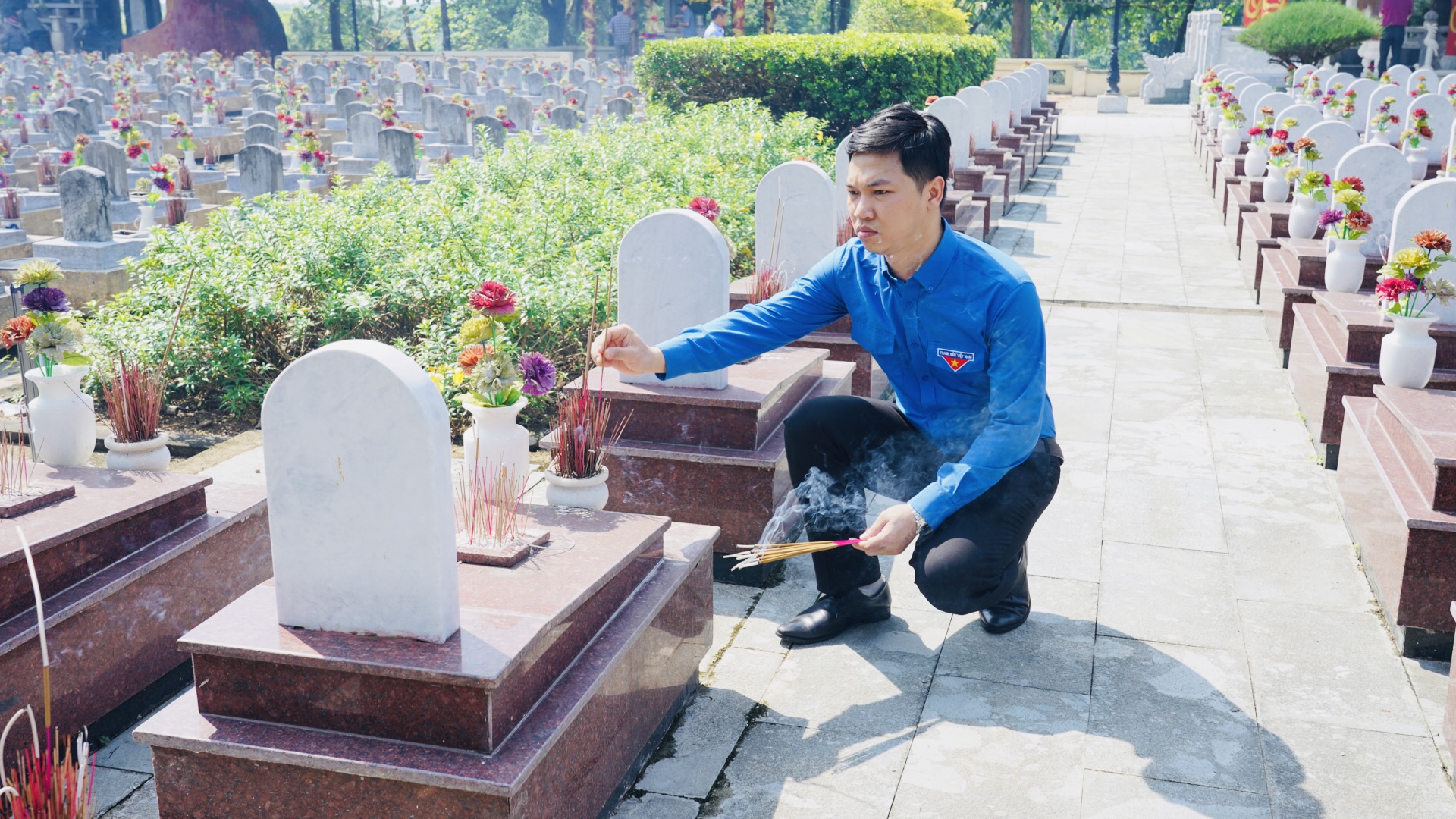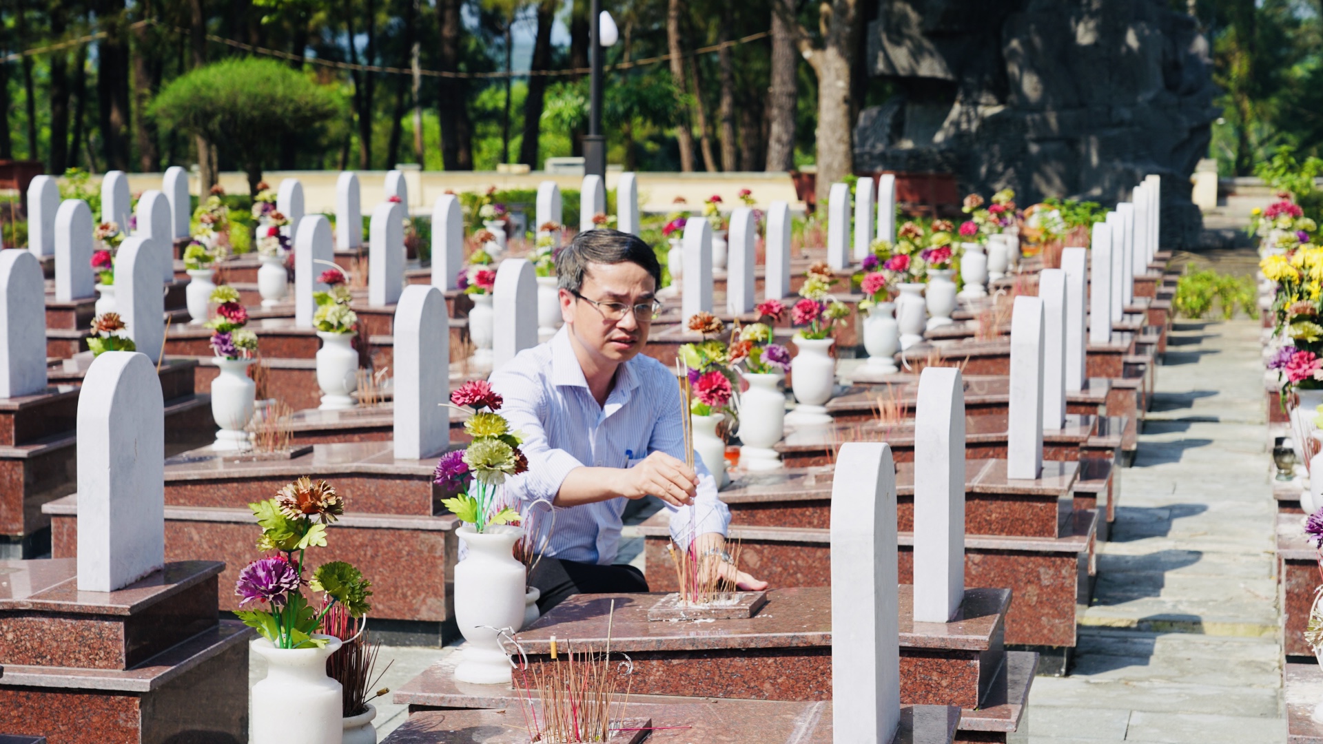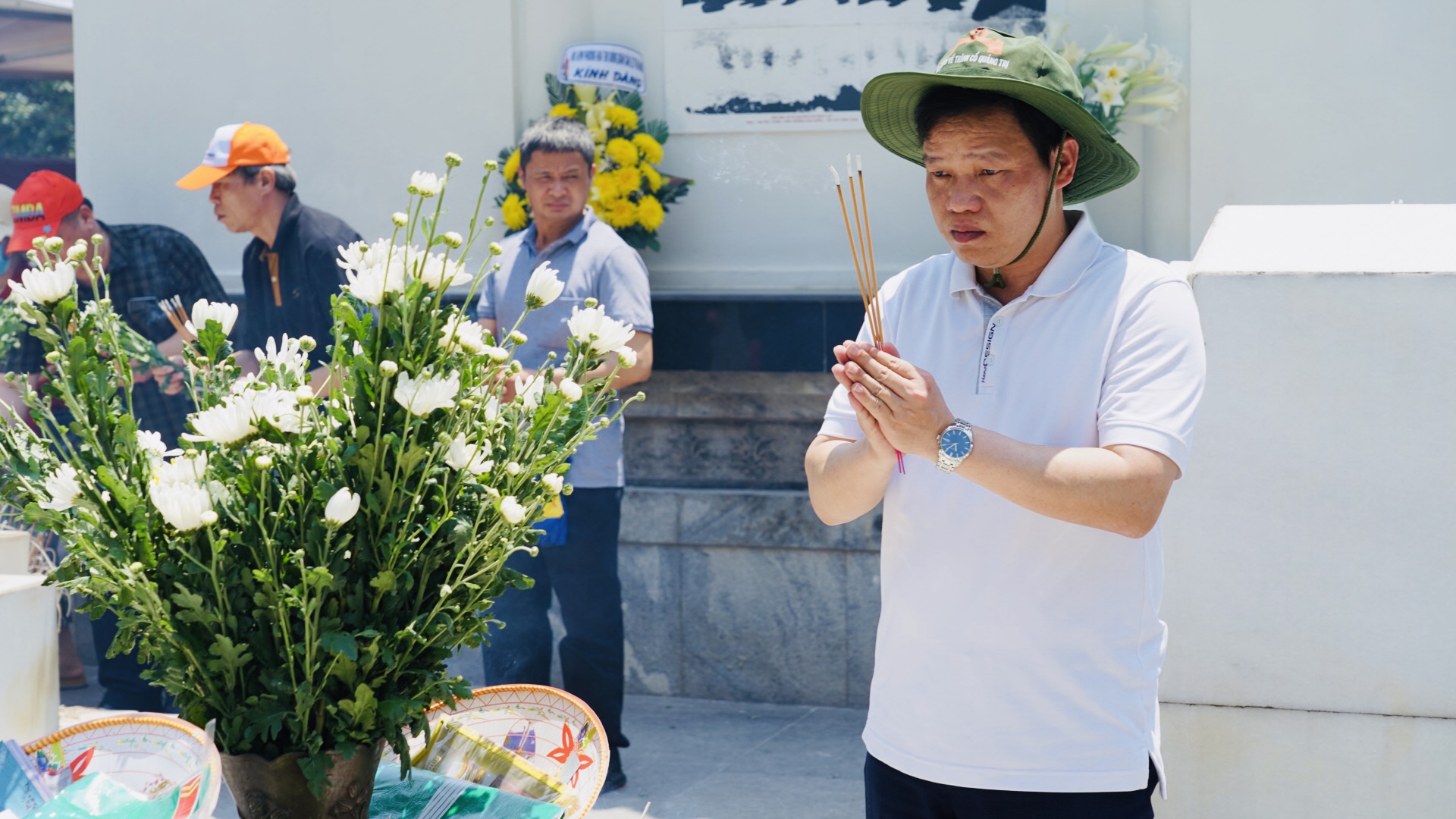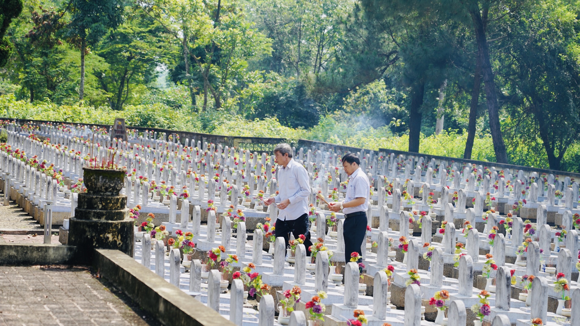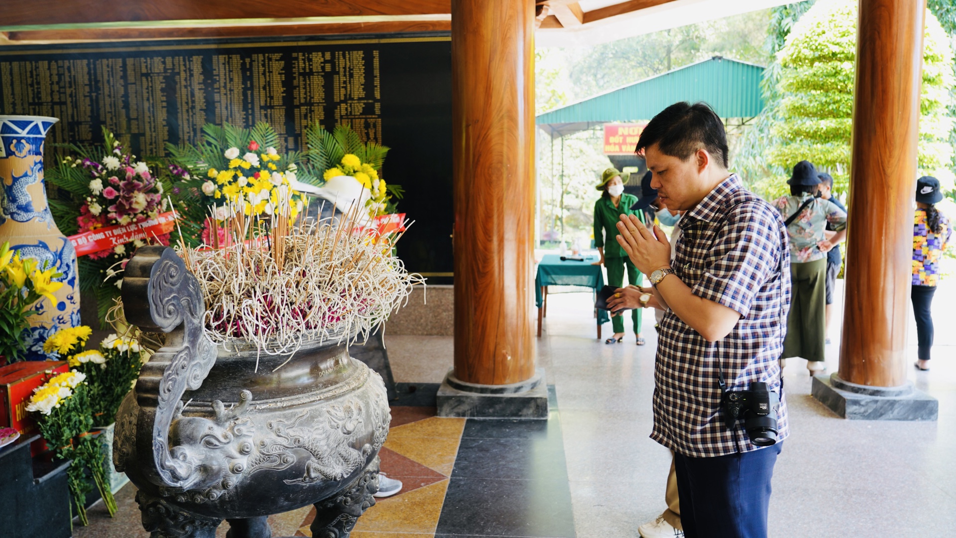 Đoàn đến dâng hương tại Nghĩa trang liệt sỹ quốc gia Trường Sơn, nghĩa trang tọa lạc trên khu đồi Bến Tắt, cạnh đường quốc lộ 15, thuộc địa phận xã Vĩnh Trường, huyện Gio Linh, tỉnh Quảng Bình.