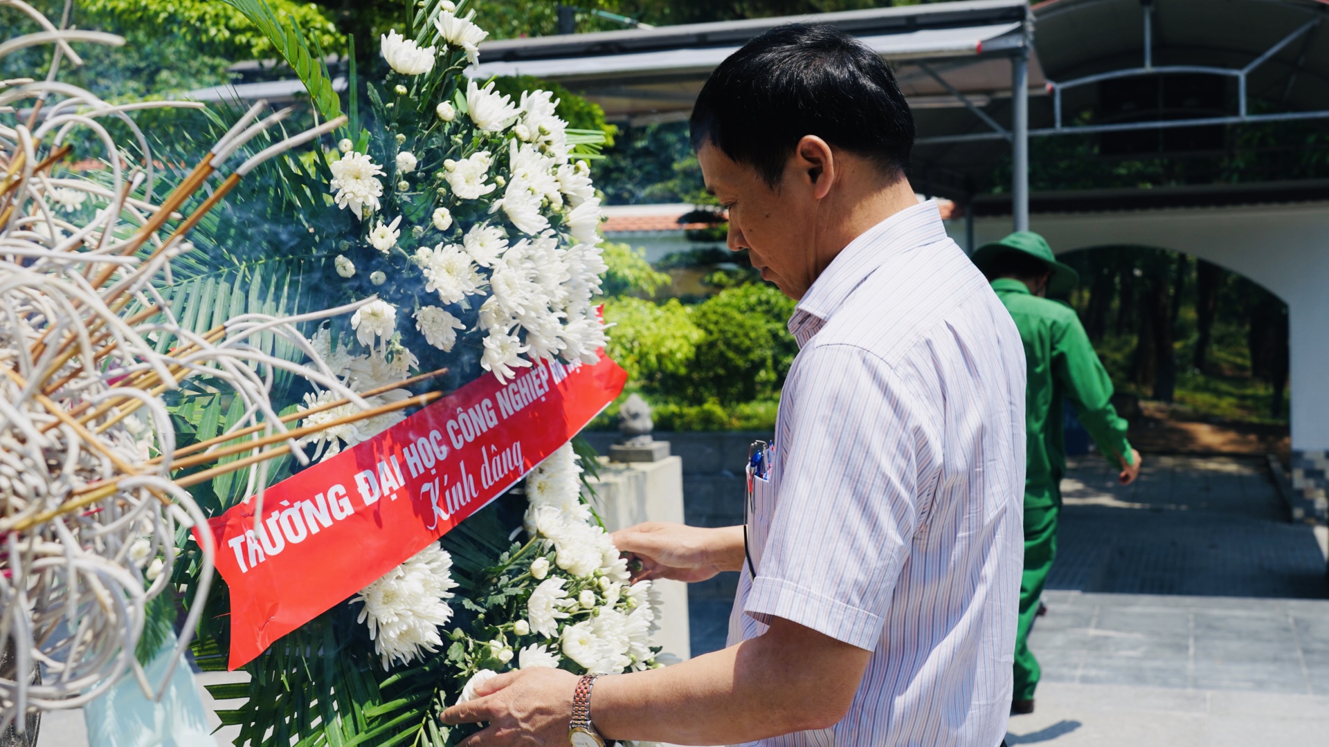 Đoàn cán bộ nhà trường có PGS.TS. Phạm Văn Bổng - Phó Bí thư Đảng ủy, Phó Hiệu trưởng làm trưởng đoàn; TS. Bùi Thị Ngân, Phó Hiệu trưởng; PGS.TS. Phạm Văn Đông - Chủ tịch Công đoàn trường; TS. Nguyễn Anh Tuấn - nguyên Phó Hiệu trưởng; đồng chí Đỗ Minh Hiền - Phó Bí thư Đoàn trường; cùng các thầy cô trưởng, phó các đơn vị trong nhà trường.
