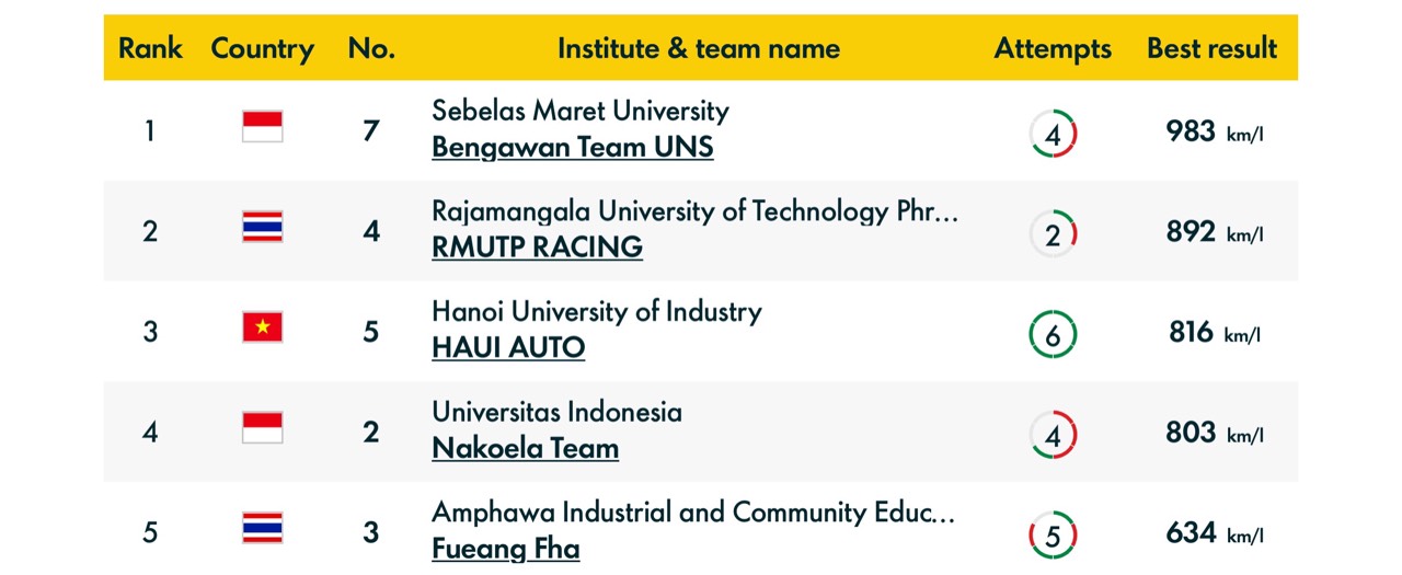 Cuộc thi năm nay diễn ra từ ngày 3/7đến 6/7, quy tụ 78 đội thi học sinh, sinh viên đến từ 12 quốc gia trong khu vực. Các đội thi tranh tài tại hai hạng mục xe gồm Urban Concept (xe mô hình đô thị) và Prototype (xe mô hình cơ sở) và ba hạng mục nhiên liệu gồm Hydrogen Fuel Cell (pin nhiên liệu hydrogen), Battery-electric (pin điện) và Internal Combustion Engine (ICE - động cơ đốt trong gồm xăng, dầu diezel, ethanol).