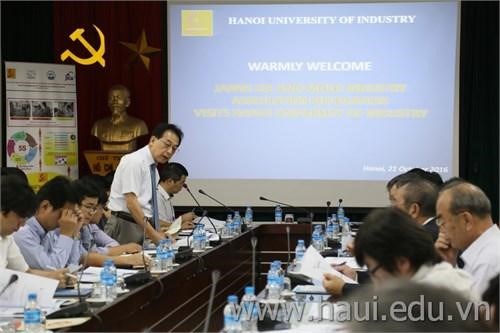 Tại buổi làm việc, đại diện lãnh đạo Nhà trường và Hiệp hội đã có những trao đổi về các cơ hội hợp tác. Sự quan tâm của JADMA dành cho Trường Đại học Công nghiệp Hà Nội là cơ hội để Nhà trường tiếp cận với các doanh nghiệp của Nhật Bản, nắm bắt các yêu cầu doanh nghiệp cần, từ đó có hướng xây dựng và phát triển các chương trình đào tạo chuyên sâu, chuyên ngành phù hợp.