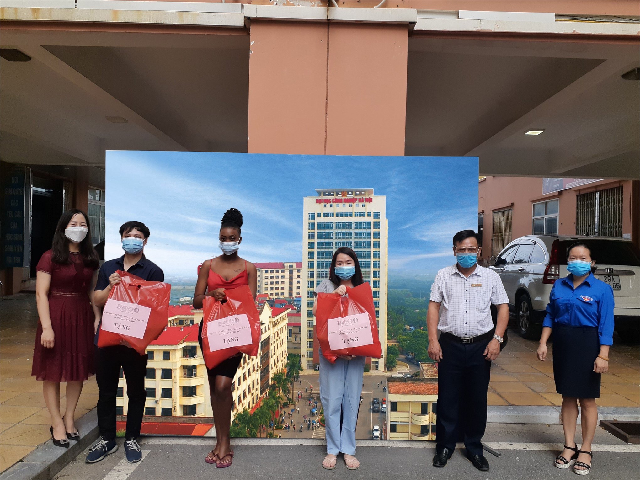 Sinh viên quốc tế và sinh viên Việt Nam ở lại KTX nhà trường nhận quà hỗ trợ từ chương trình " Tiếp sức sinh viên vượt qua COVID"