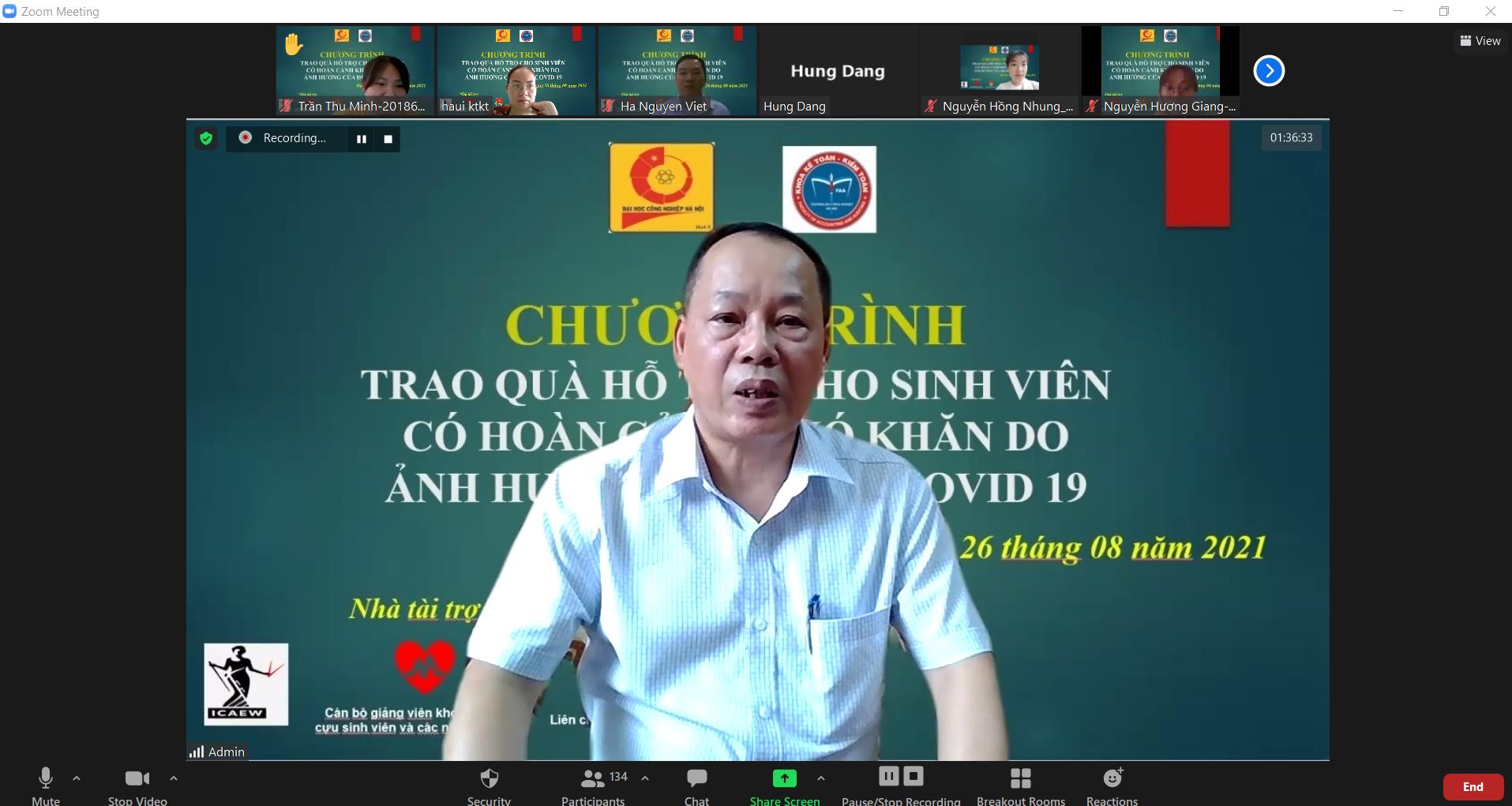 Bà Trương Thị Thanh Hoài – Bí thư Đoàn Thanh niên Đại học Công nghiệp Hà Nội chia sẻ: Với tổng số 1054 phần quà đã trao cho các bạn sinh viên gặp khó khăn do đại dịch COVID-19, và dự kiến sẽ trao 160 phần quà trong đợt tiếp theo, hy vọng rằng những món quà nhỏ từ các tổ chức, cá nhân gửi tới các bạn trong thời gian này sẽ là nguồn động viên tinh thần, tiếp thêm sức mạnh để các bạn có thể khắc phục khó khăn vượt qua đại dịch.