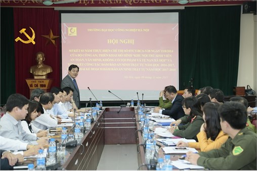 Sáng ngày 9/11/2017, Trường Đại học Công nghiệp Hà Nội (ĐHCNHN) phối hợp với Công an Thành phố Hà Nội, Công an Quận Bắc Từ Liêm tổ chức Hội nghị sơ kết 3 năm thực hiện chỉ thị số 07/CT-BCA-V28 ngày 15/8/2014 của BCA về đẩy mạnh phong trào toàn dân bảo vệ an ninh Tổ quốc, tổng kết công tác đảm bảo an ninh trật tự năm học 2016-2017 và triển khai kế hoạch đảm bảo an ninh trật tự năm học 2017-2018.