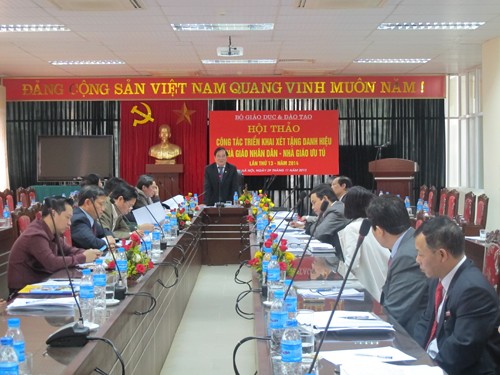 Dự Hội thảo, các đại biểu đã được nghe ông Nguyễn Thành Tuấn trình bày tóm tắt nội dung Thông tư 07 và dự thảo văn bản triển khai công tác xét tặng danh hiệu Nhà giáo Nhân dân- Nhà giáo Ưu tú lần thứ 13.