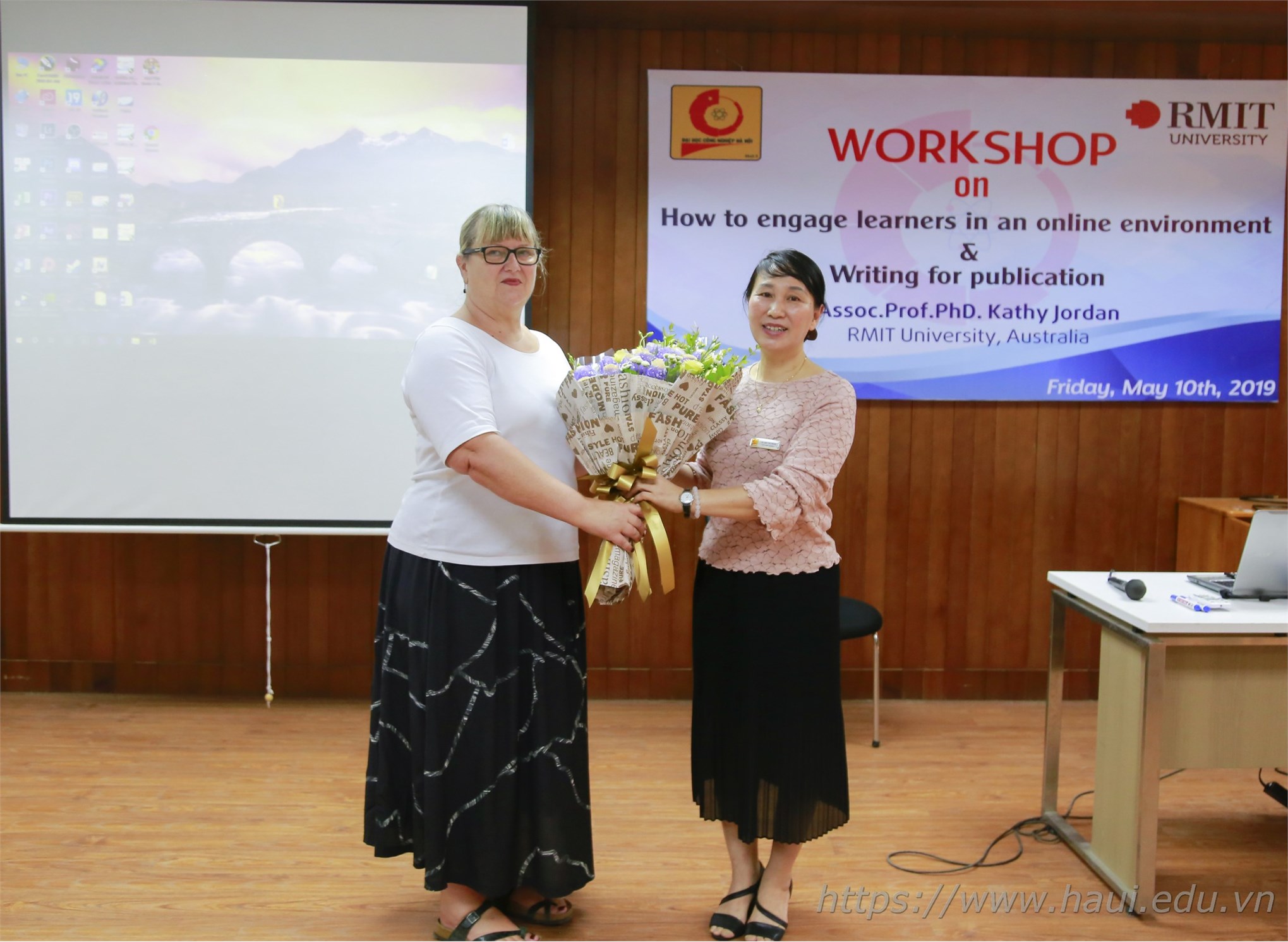 Trong ngày 10/5/2019 tại Hội trường tầng 10 nhà A1, Khoa Ngoại ngữ, trường Đại học Công nghiệp Hà Nội (ĐHCNHN) đã tổ chức thành công buổi hội thảo với chủ đề “How to engage learners in an online environment” & “Writng for publication” với sự chủ trì của TS. Bùi Thị Ngân - Phó Hiệu trưởng Nhà trường, TS. Hoàng Ngọc Tuệ - Trưởng Khoa Ngoại ngữ và TS. Trần Thị Duyên – Phó giám đốc, Phụ trách Trung tâm Khảo thí.