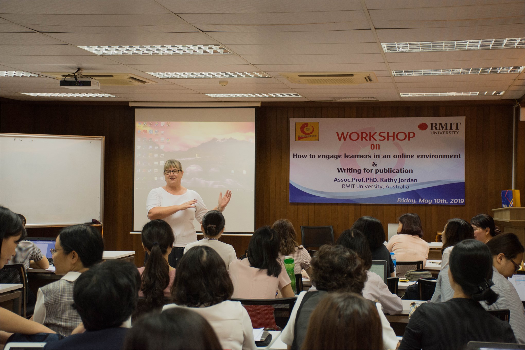 Với sự hiện diện của Phó giáo sư, Tiến sỹ Kathy Jordan – chuyên gia tới từ trường Đại học RMIT – Australia trong vai trò diễn giả, buổi hội thảo đã thu hút được sự tham gia của hơn 30 cán bộ giảng viên đang công tác tại Khoa Ngoại ngữ.